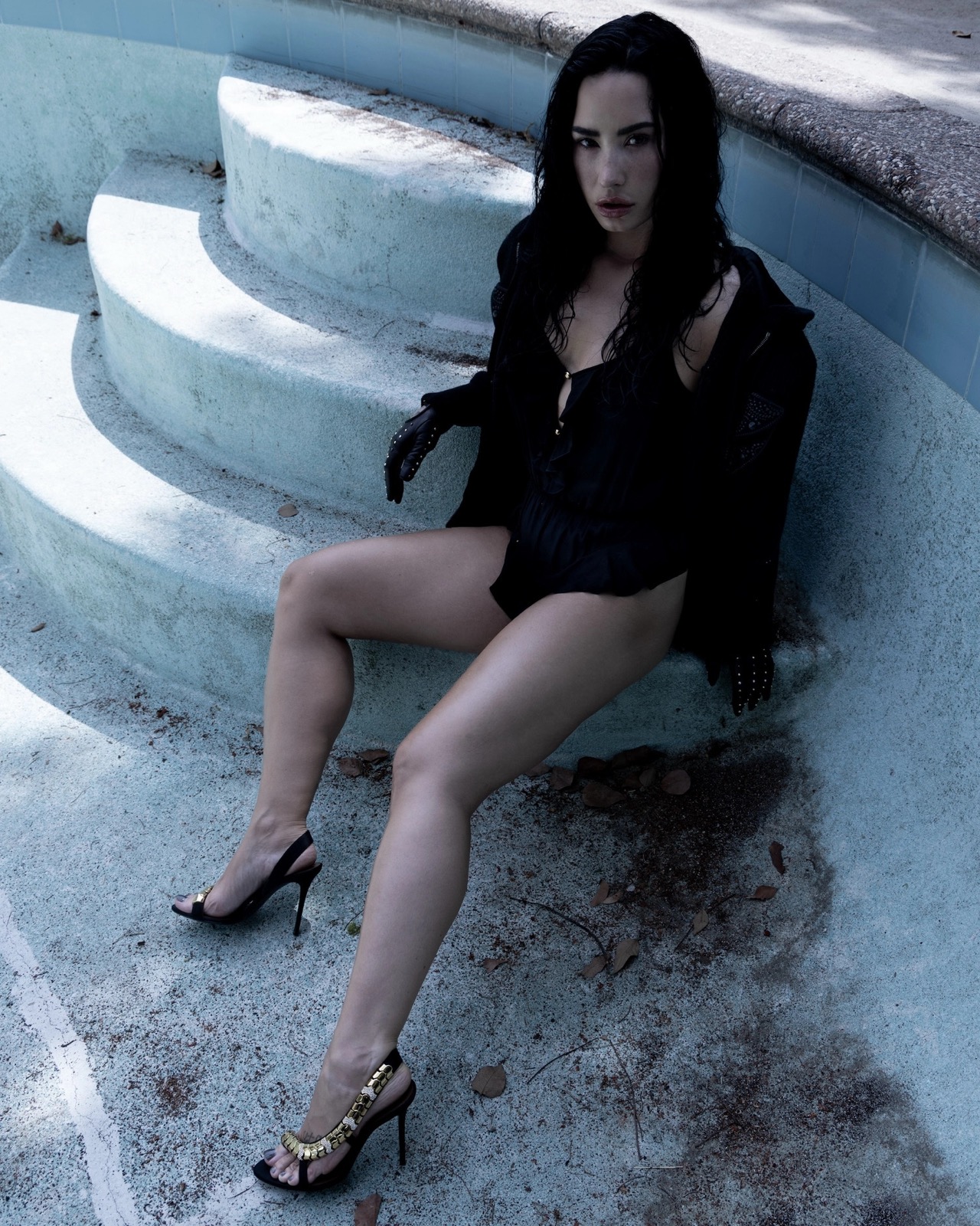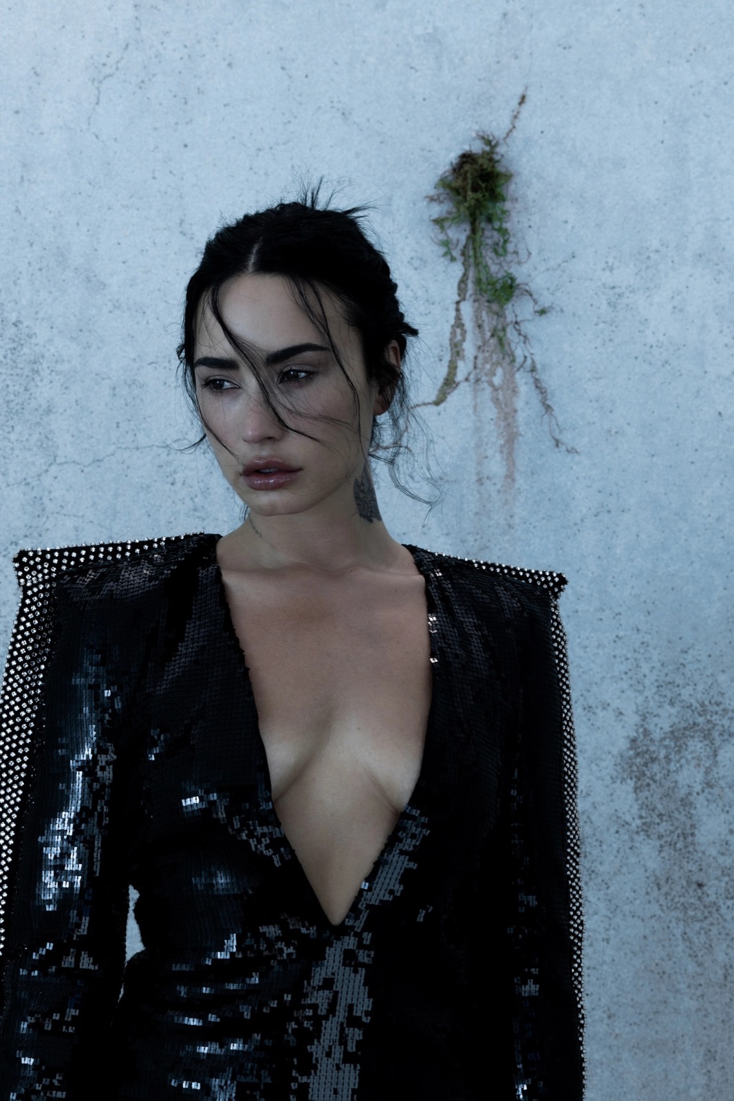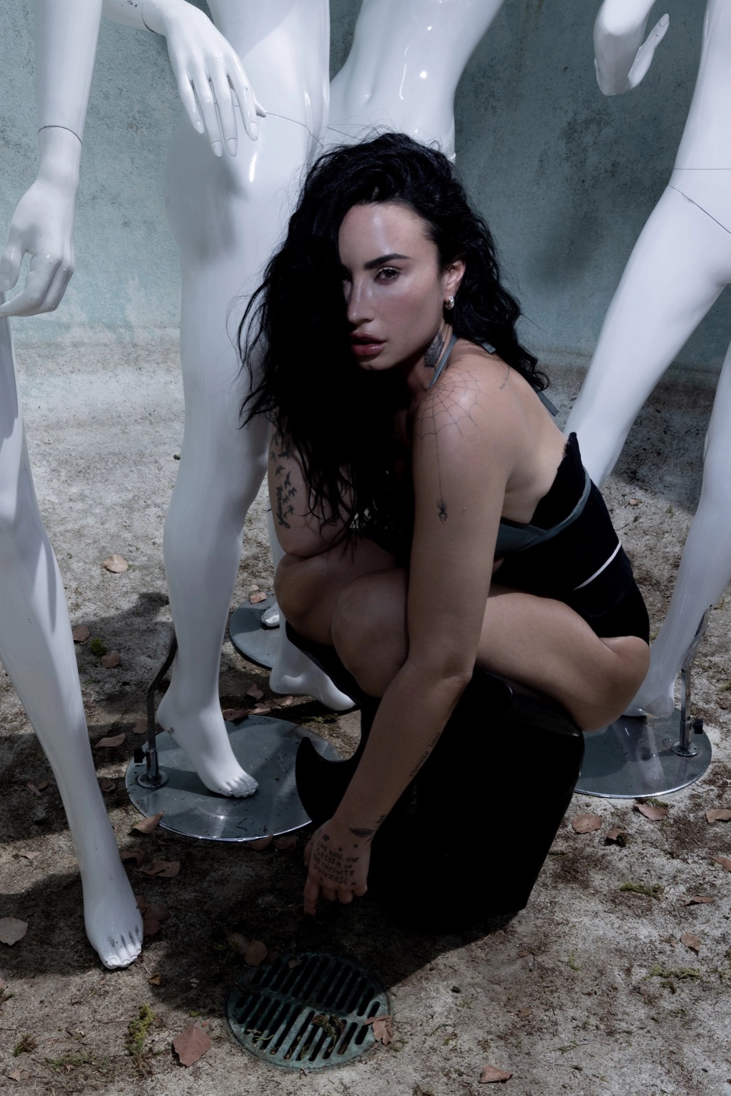 Quand la mode flirte avec le film d’horreur, Demi transforme chaque fissure de béton en tapis rouge gothique trempé de sarcasme et de sequins.