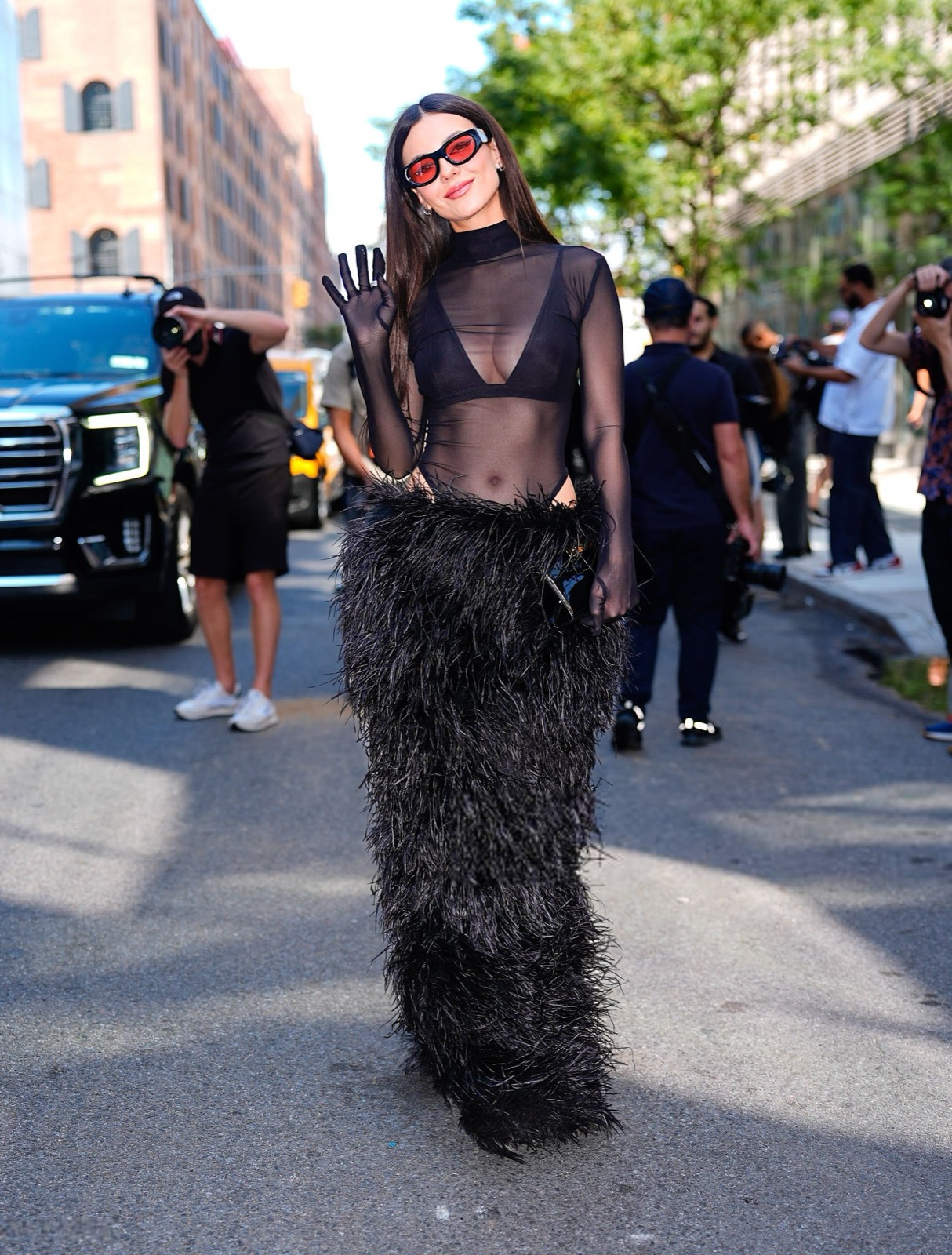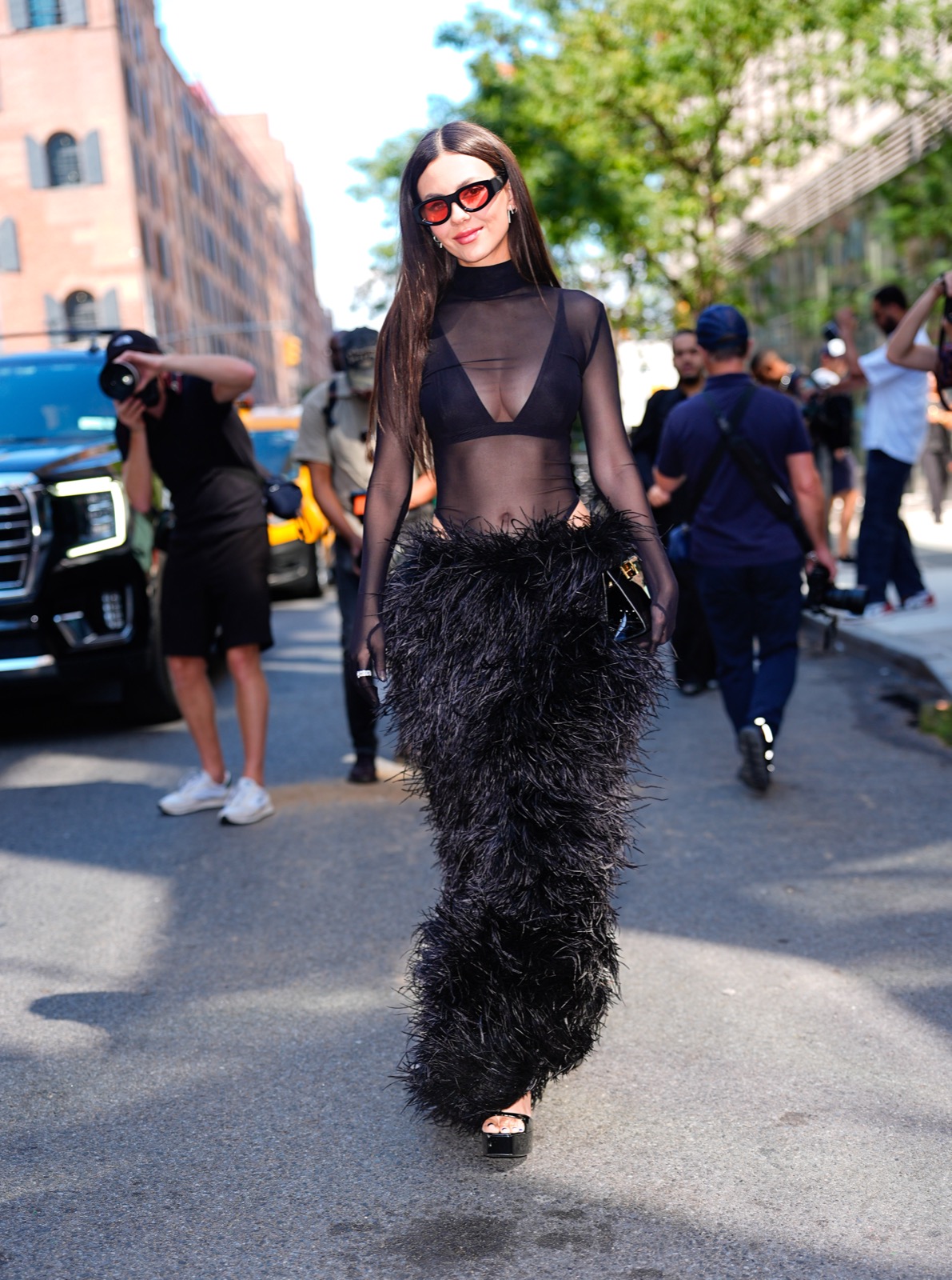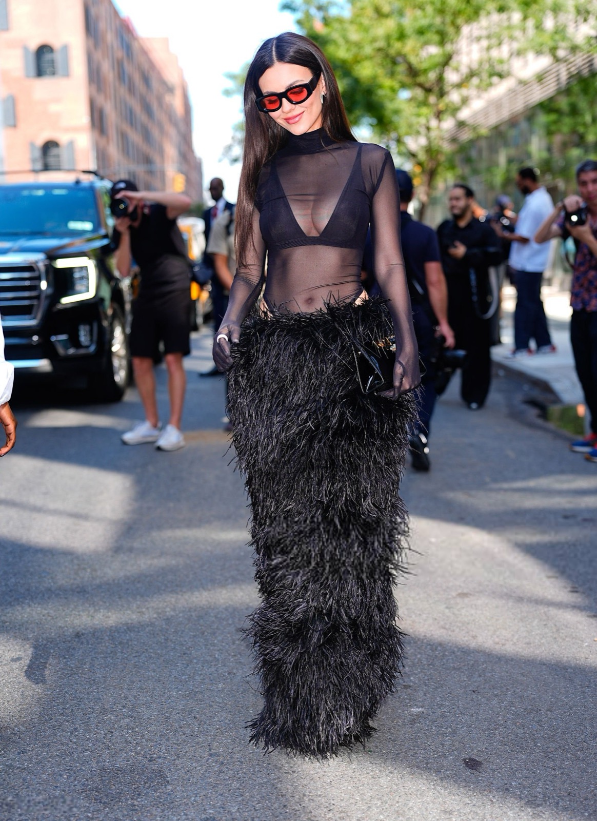 Habillée d’un haut transparent et d’une jupe noire hérissée de plumes façon coussin éventré, Victoria avance comme si les pavés de New York avaient été sponsorisés par Bronx and Banco. Le sérieux dans son regard vaut presque un générique de télé-réalité.