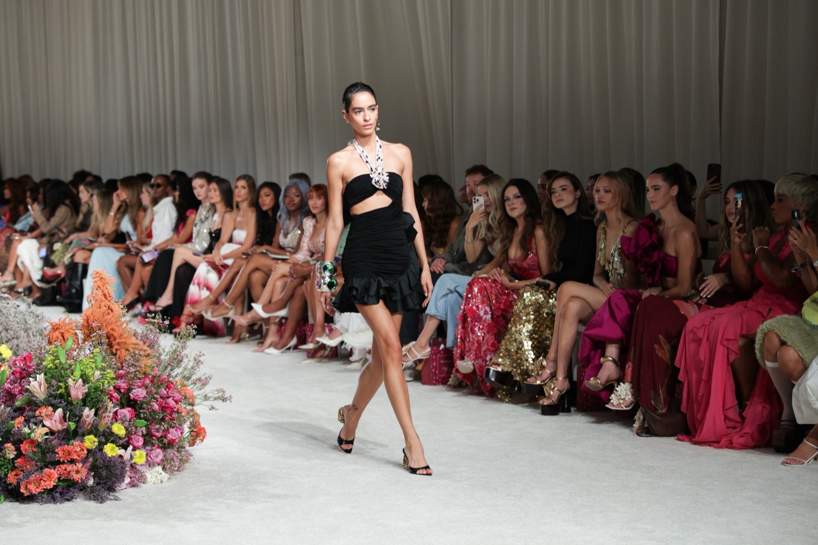 Elizabeth Gillies en bouquet piquant au défilé PatBO à New York