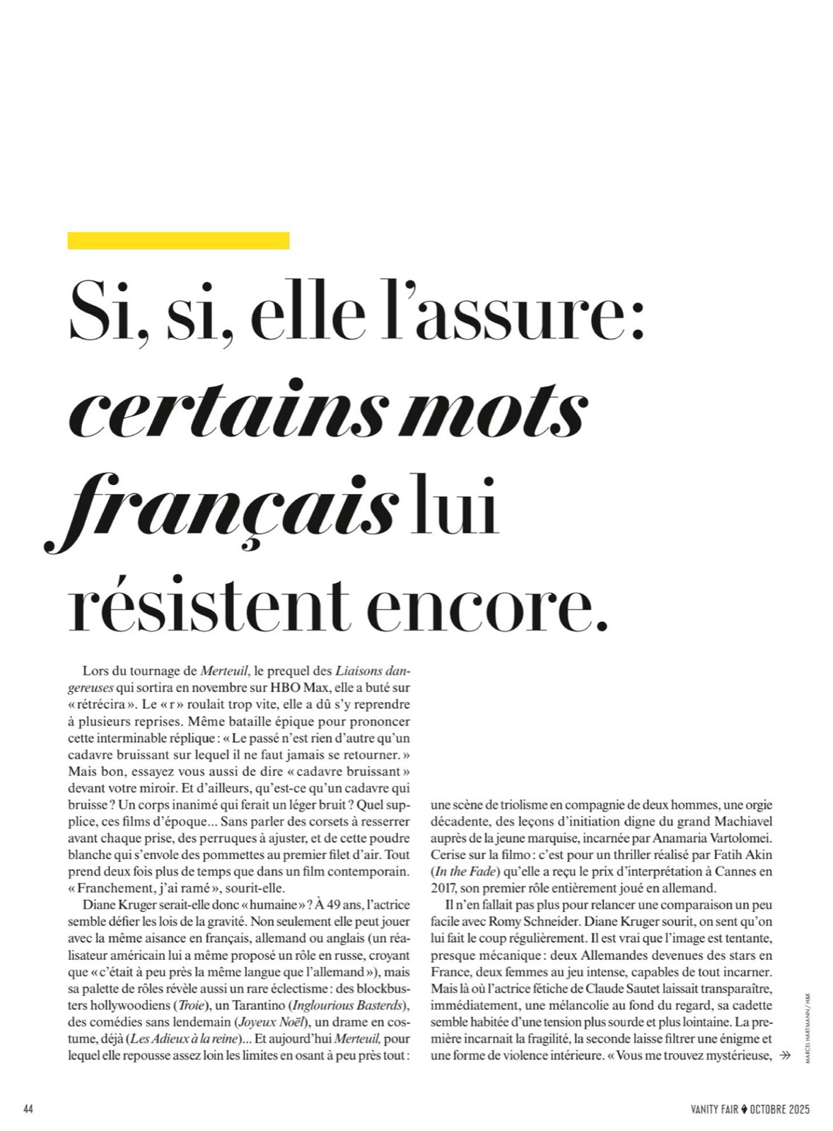 Diane Kruger captive dans Vanity Fair France, muse en noir satiné