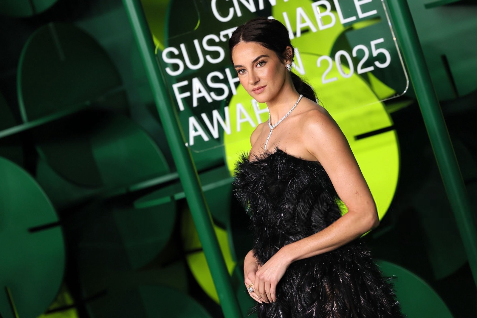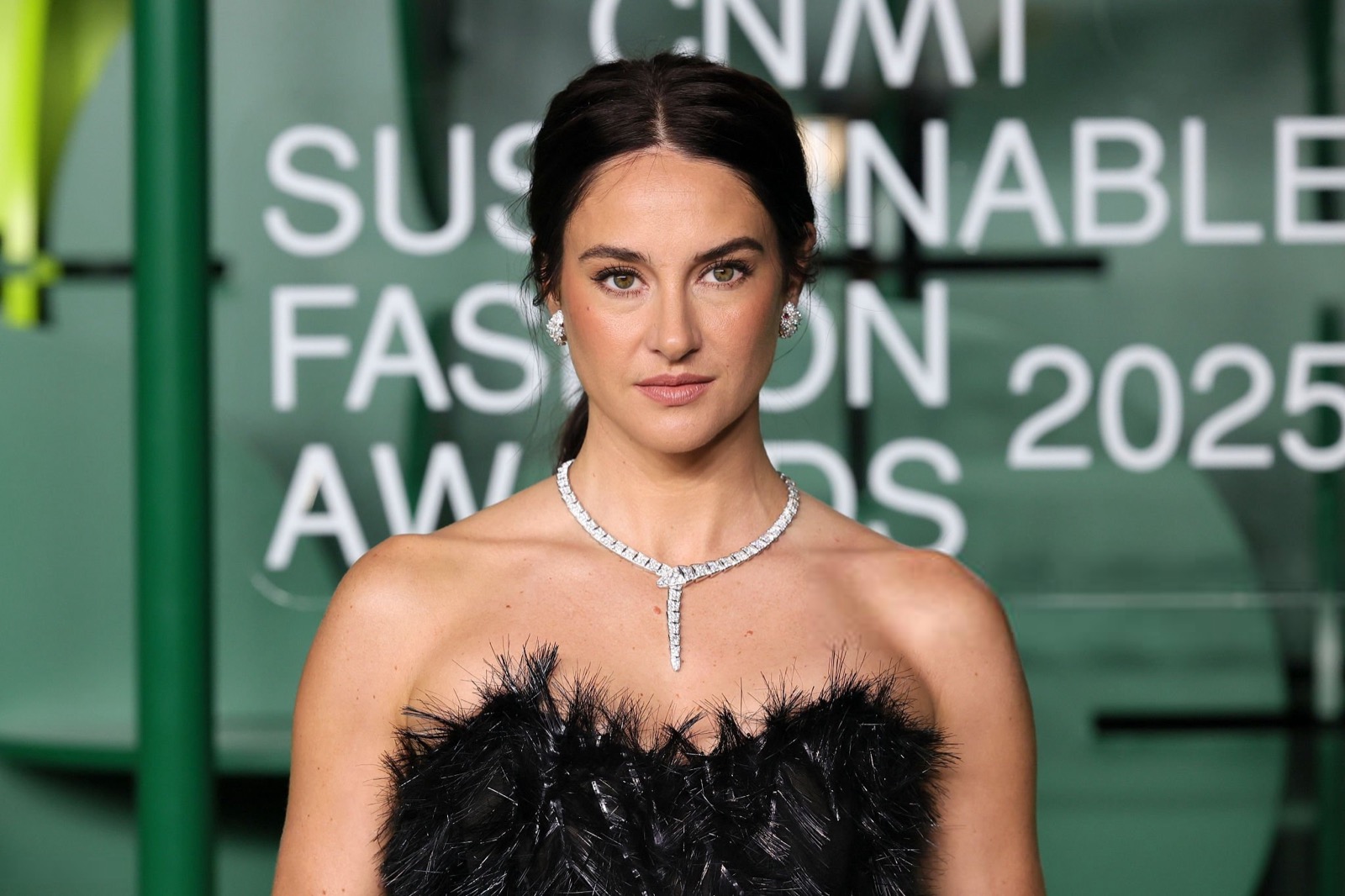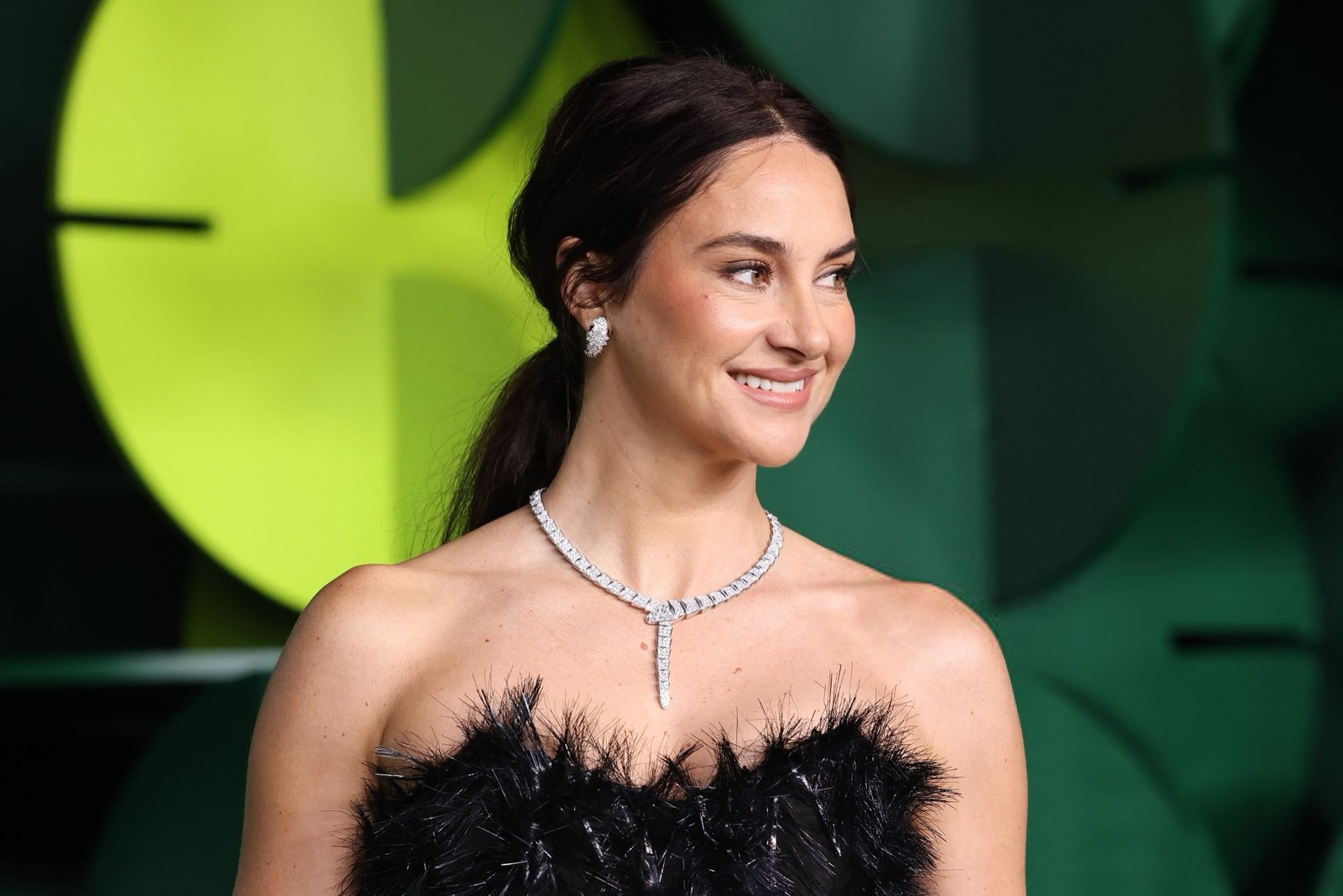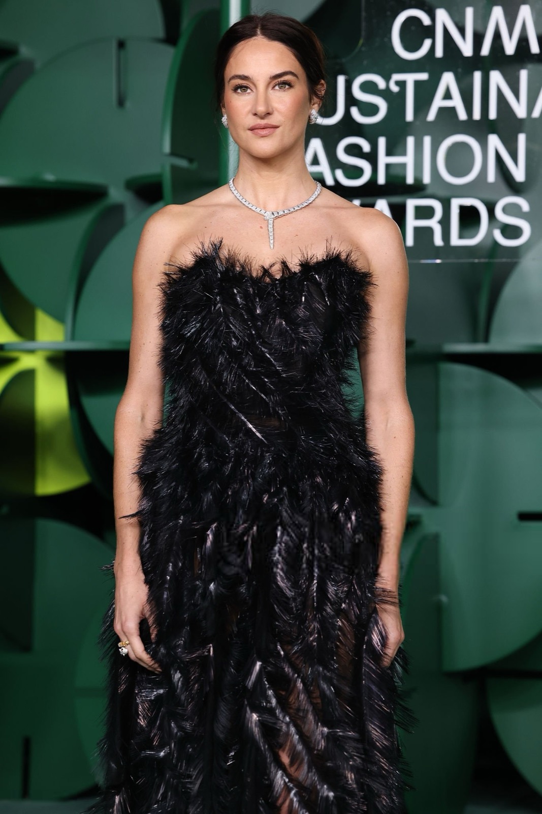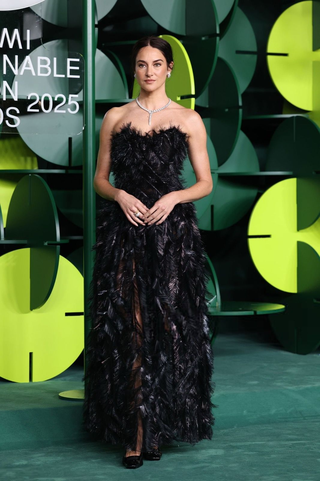 Dans sa robe de plumes noires, Shailene Woodley semble sortie d’un film noir revisité par un styliste vegan, oscillant entre diva ténébreuse et oiseau de nuit en pleine parade.