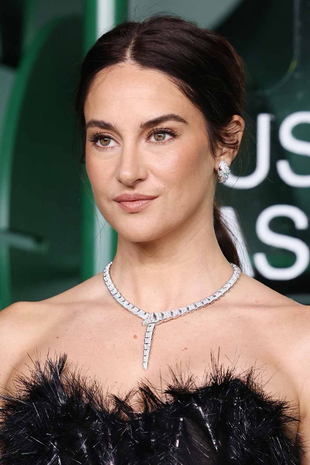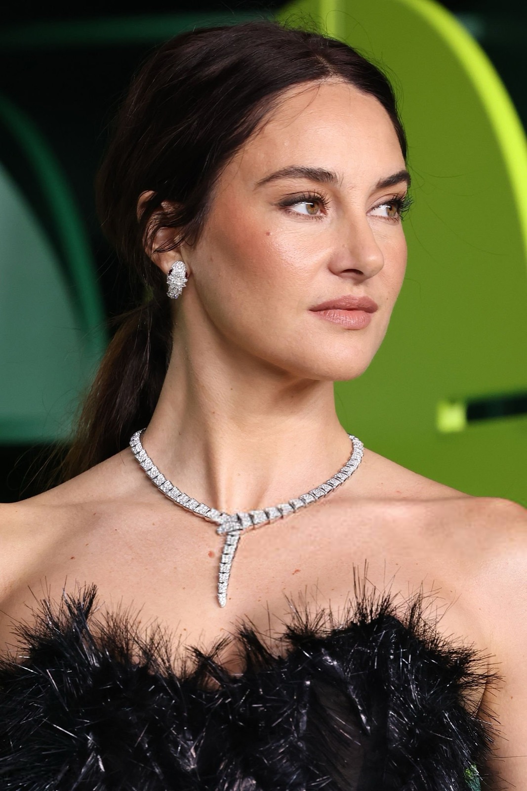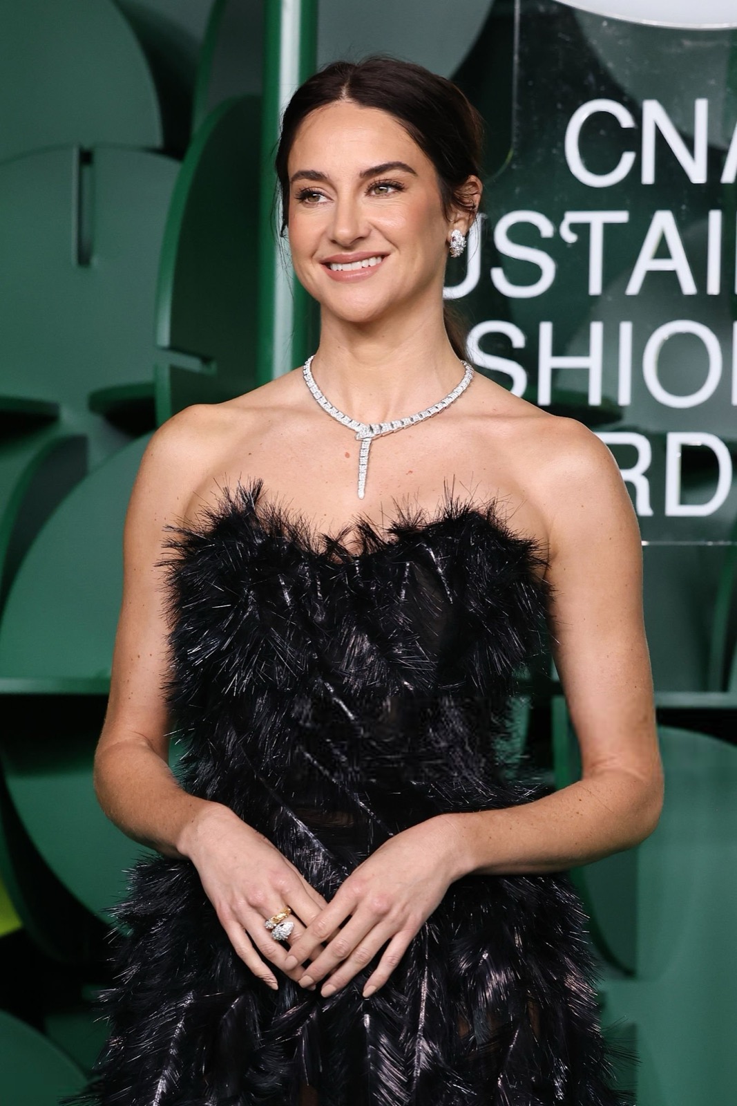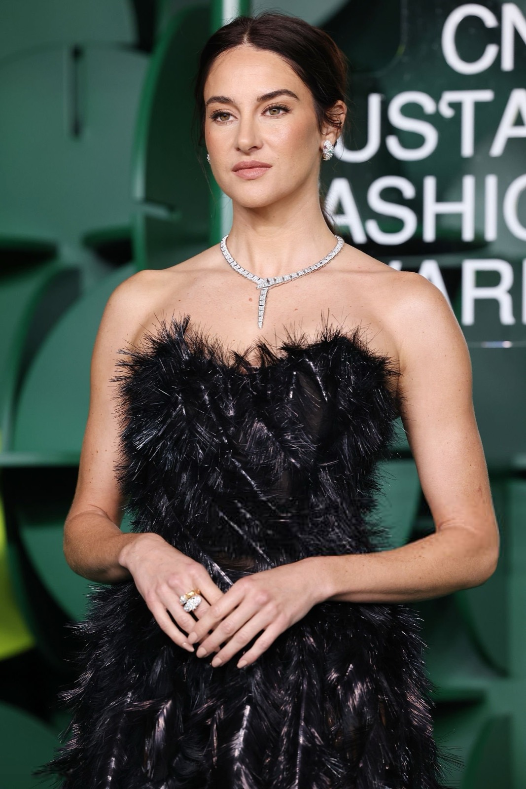 Dans sa robe de plumes noires, Shailene Woodley semble sortie d’un film noir revisité par un styliste vegan, oscillant entre diva ténébreuse et oiseau de nuit en pleine parade.