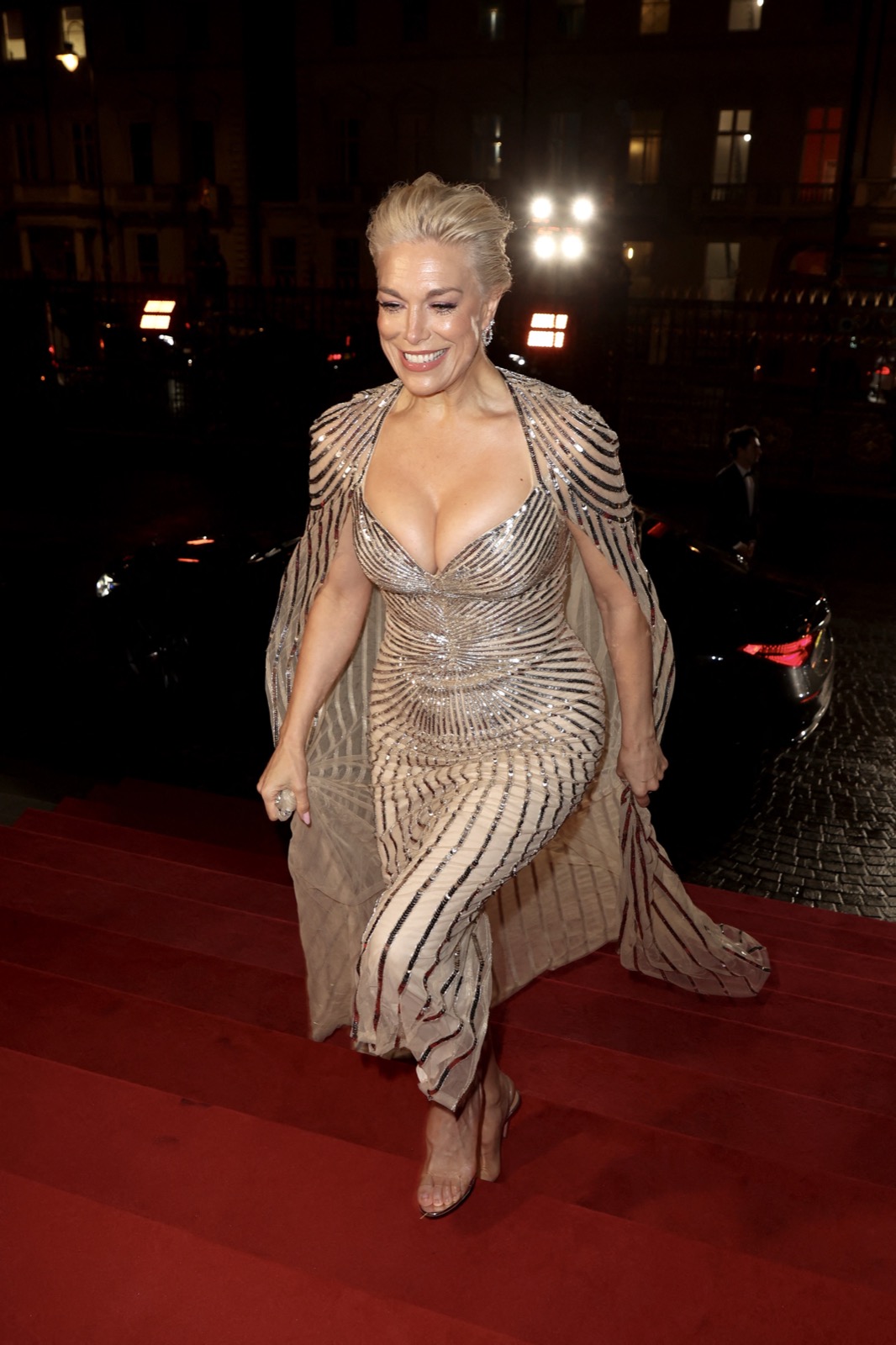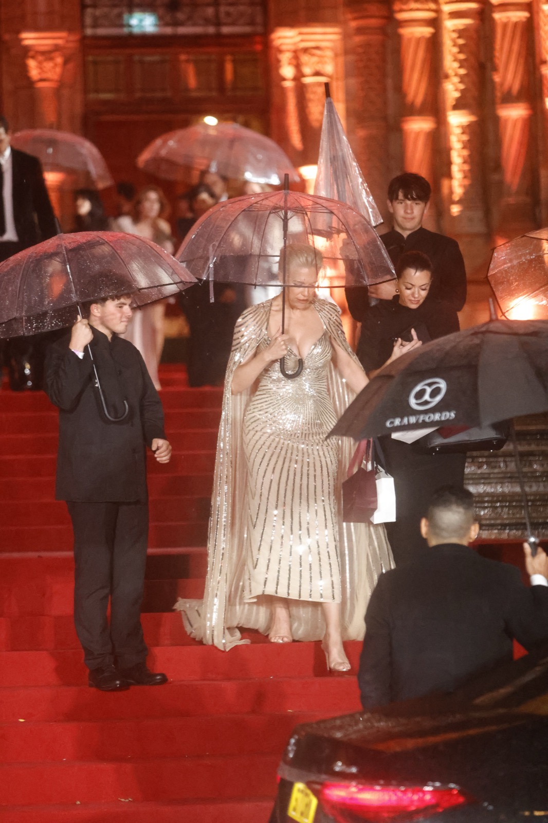 Chaque strass plaide coupable de glamour excessif — même Londres semble rougir sous sa lumière dorée.
