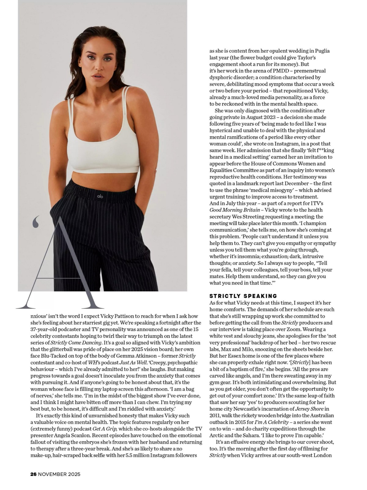 En une de Women’s Health UK, Vicky Pattison redéfinit la force tranquille : pull moelleux, regard brûlant, et posture de reine zen prête à dompter ses démons comme ses followers.