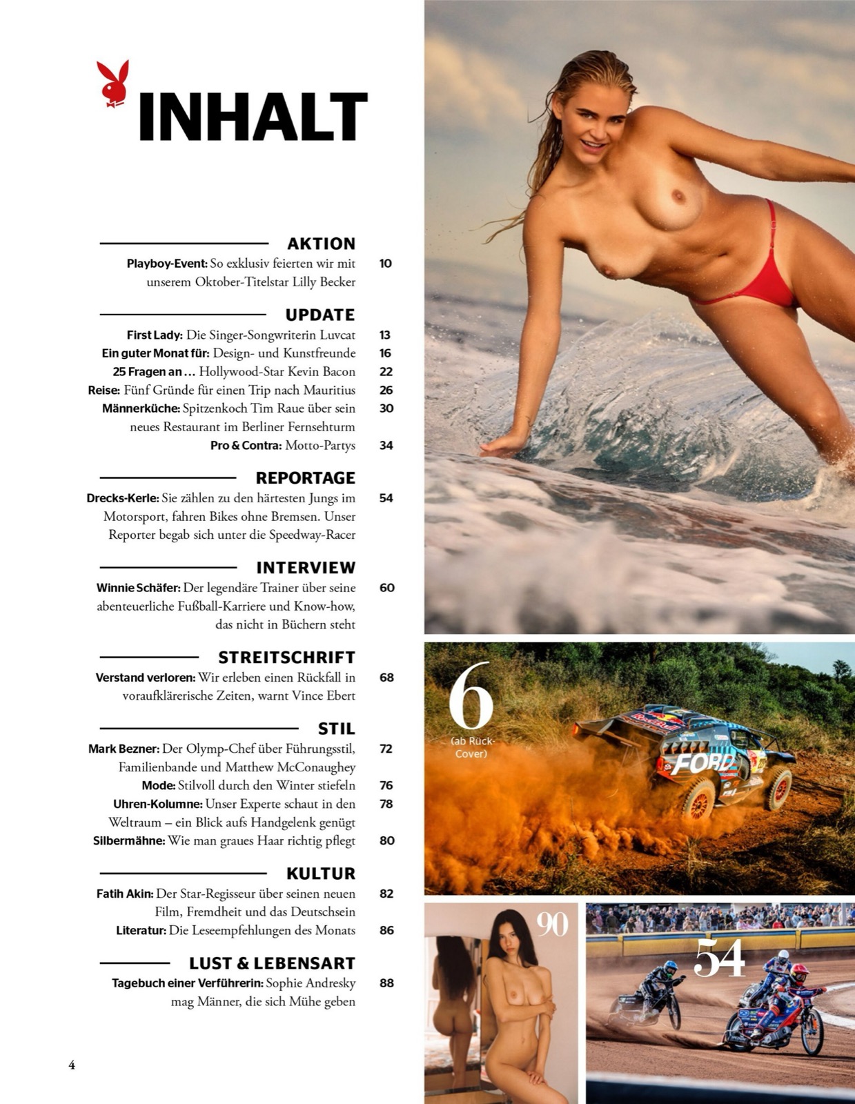 En couverture de Playboy Germany, elle flotte comme une Aphrodite gonflée à bloc, mi-déesse de l’écume, mi-péché capital en string fuchsia.