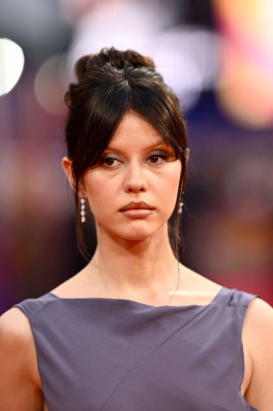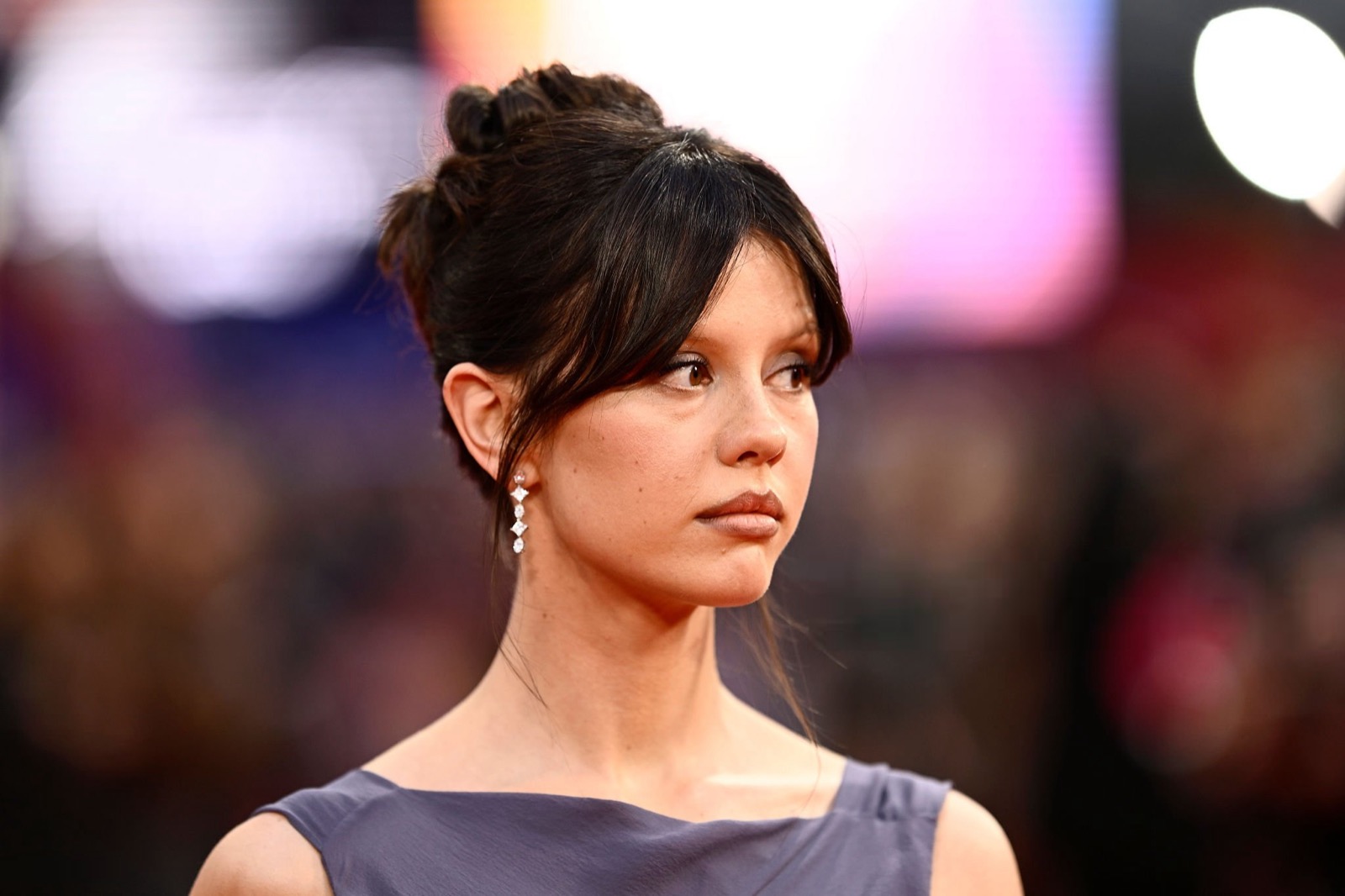 À la première du film Frankenstein lors du BFI London Film Festival, l’actrice électrise le tapis rouge dans une robe mauve presque immatérielle. La transparence de sa tenue épouse sa peau avec une audace fantomatique, oscillant entre sensualité glacée et révélation maîtrisée.