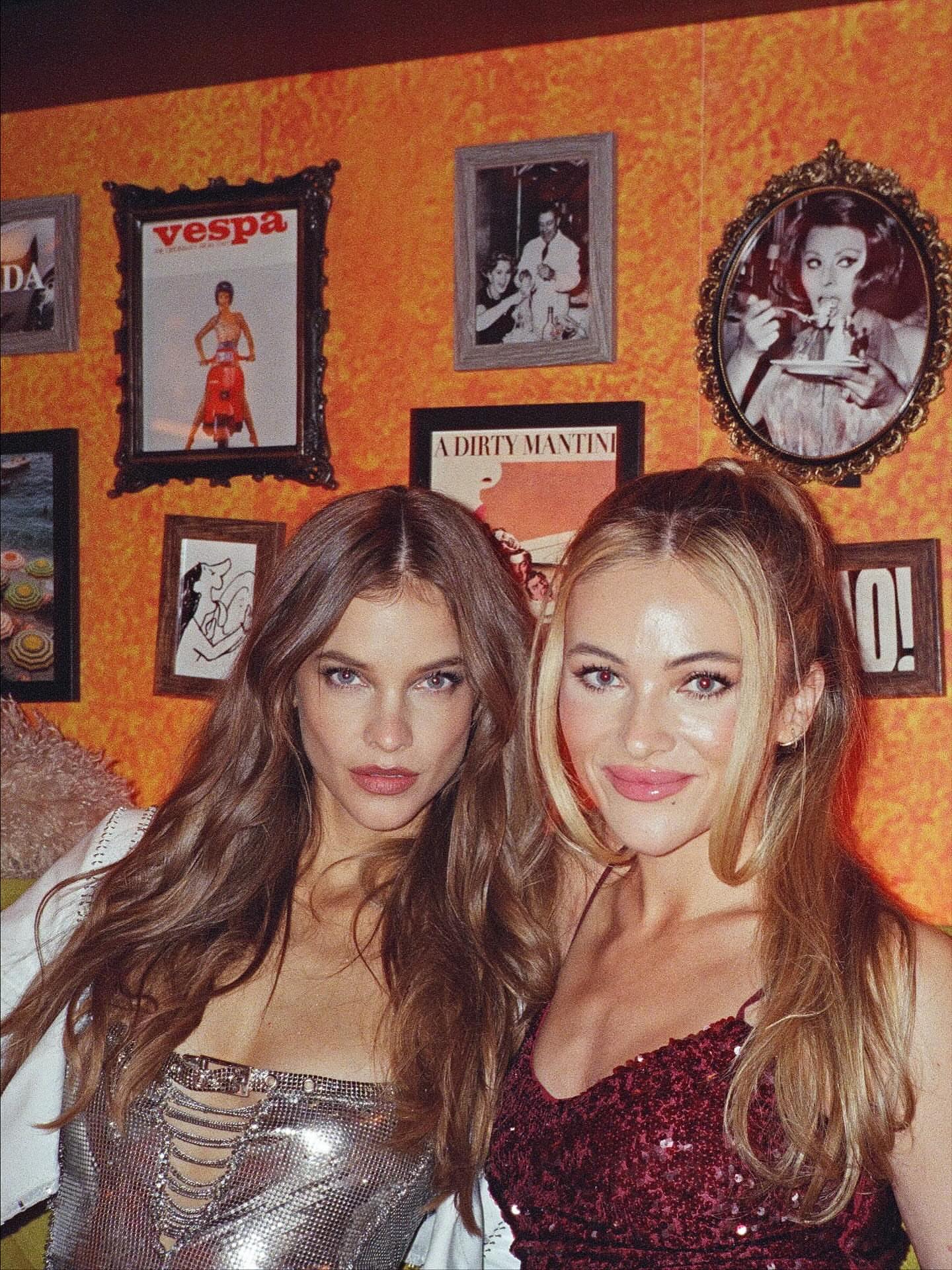 Vêtue d’un corset argenté qui scintille comme une armure de séductrice, Barbara Palvin s’amuse à brouiller les pistes entre ange et prédatrice. Mini-jupe blanche, épaules dénudées, regard de velours : la bombe joue la carte du rétro sexy façon dolce vita sous acide. Les murs orangés, les bouteilles de vin, les flashs complices — tout semble se plier à son aura incendiaire.