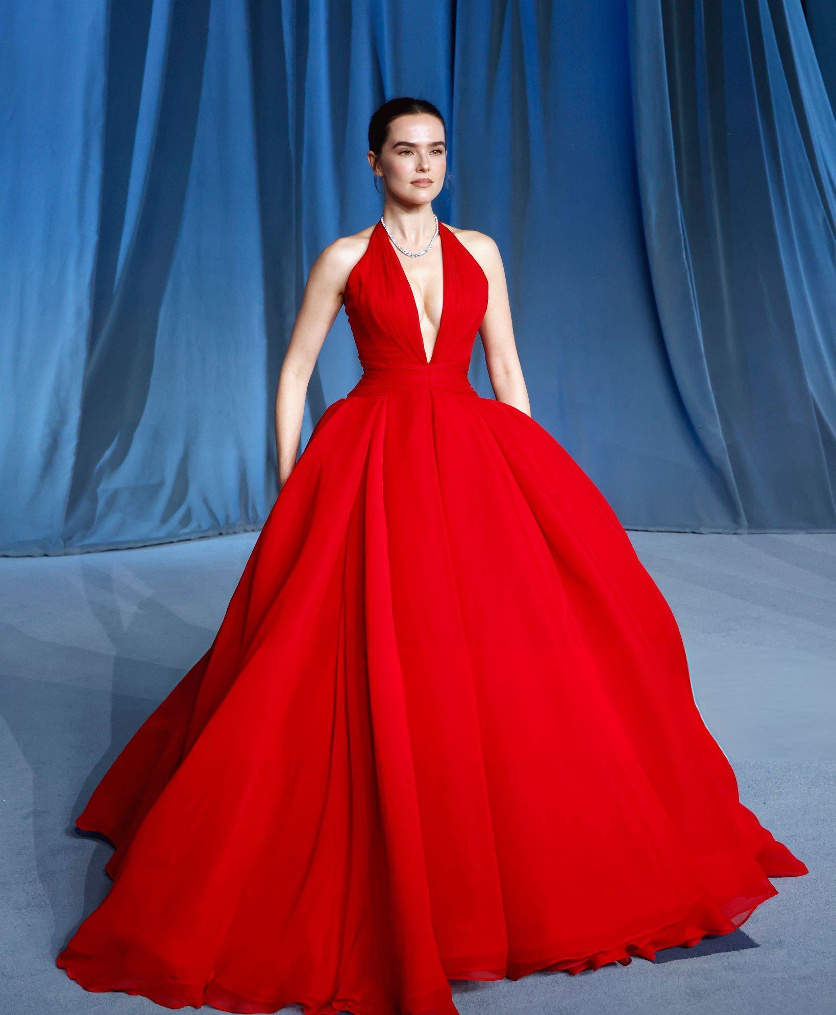 Dans sa robe cramoisie, Zoey Deutch transforme le 5th Annual Academy Museum Gala en un opéra charnel. Le décolleté s’enfonce comme un secret bien gardé, le jupon s’envole en promesse d’incendie mondain. On dirait une héroïne Hitchcockienne réinventée pour les fantasmes du XXIe siècle.