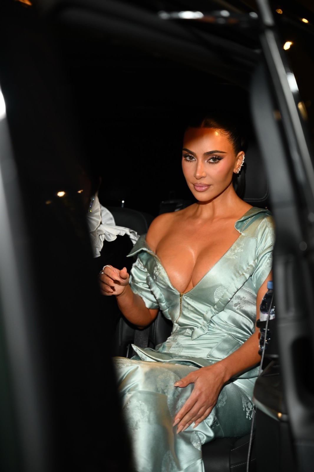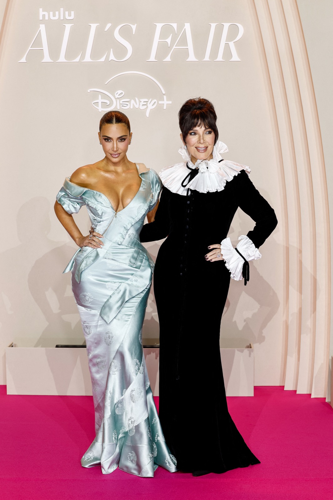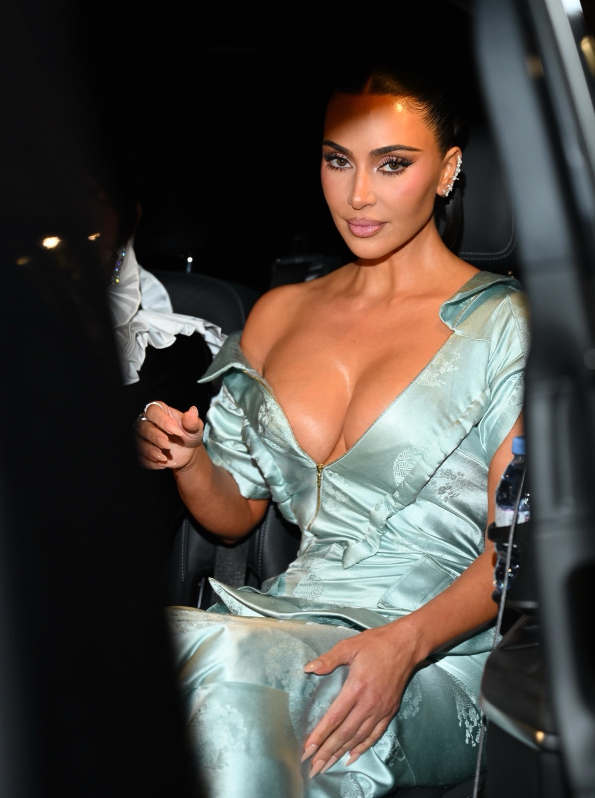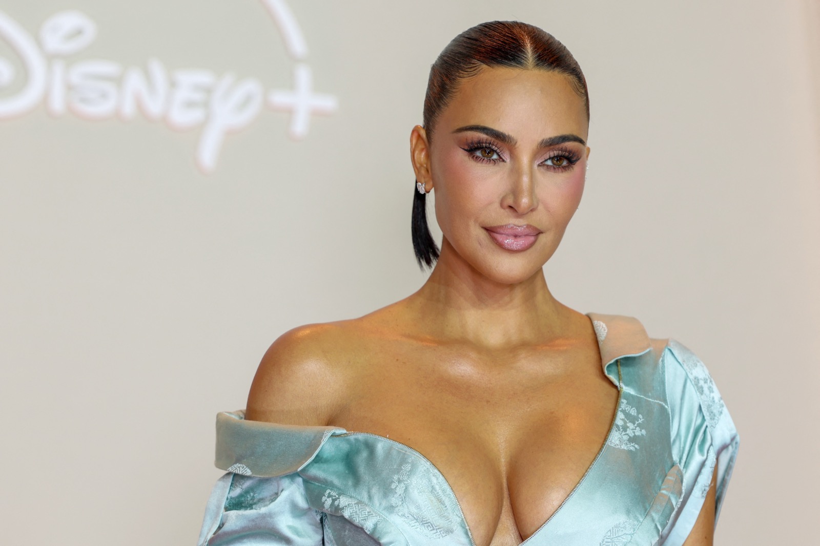 Kim Kardashian en sirène de satin au tapis rose de l’avant-première d’All’s Fair à Paris