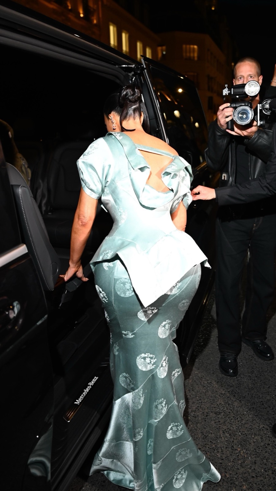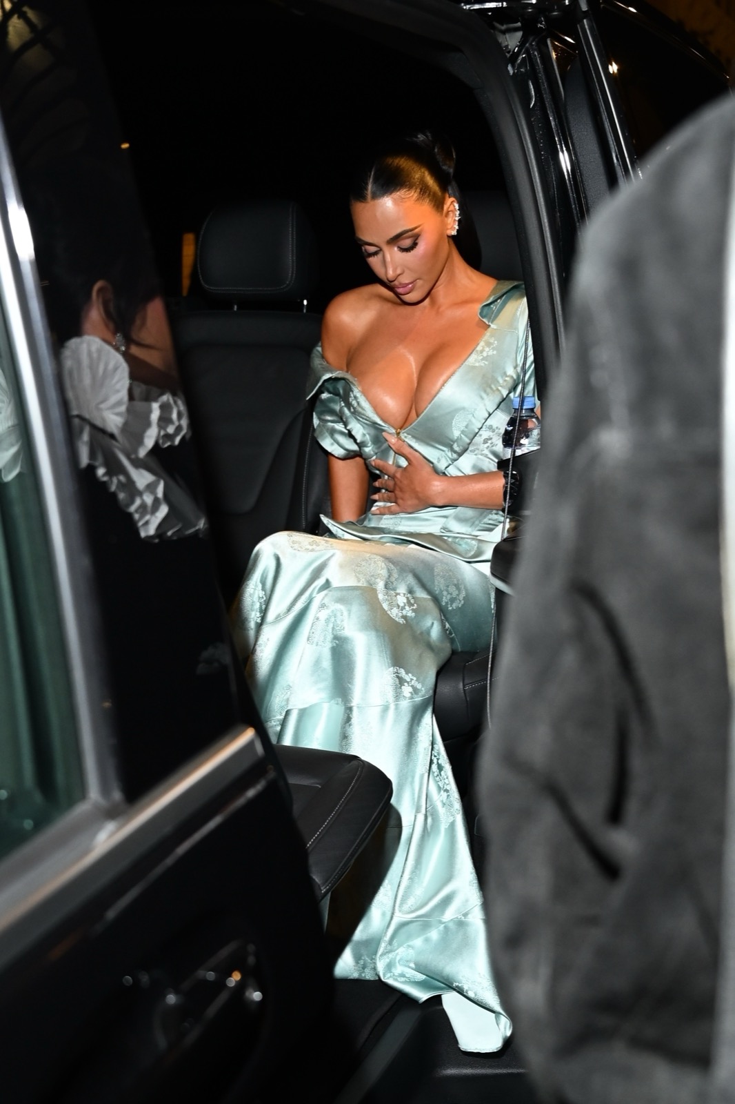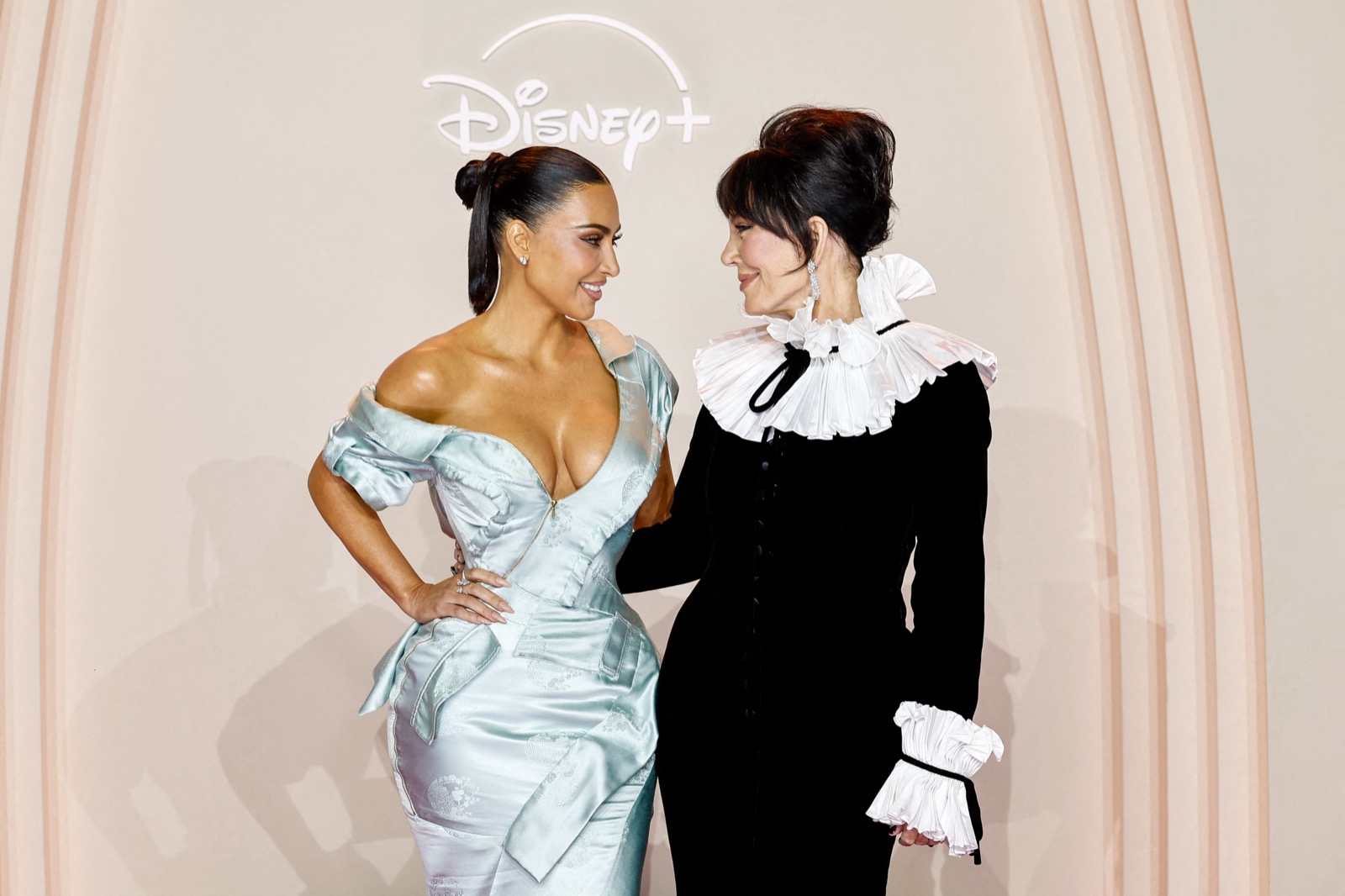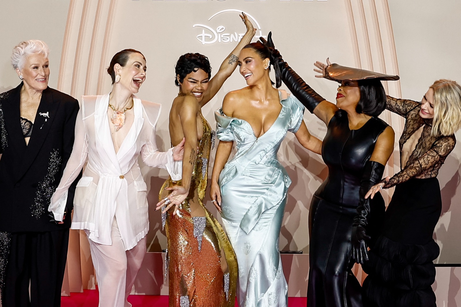 Kim Kardashian en sirène de satin au tapis rose de l’avant-première d’All’s Fair à Paris