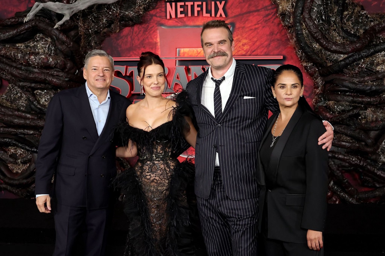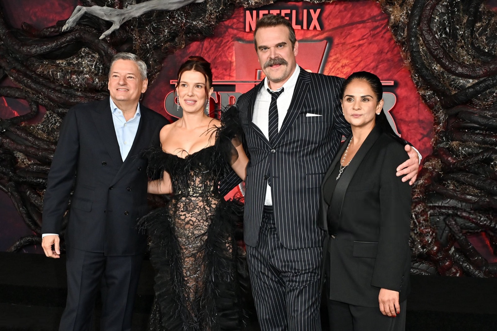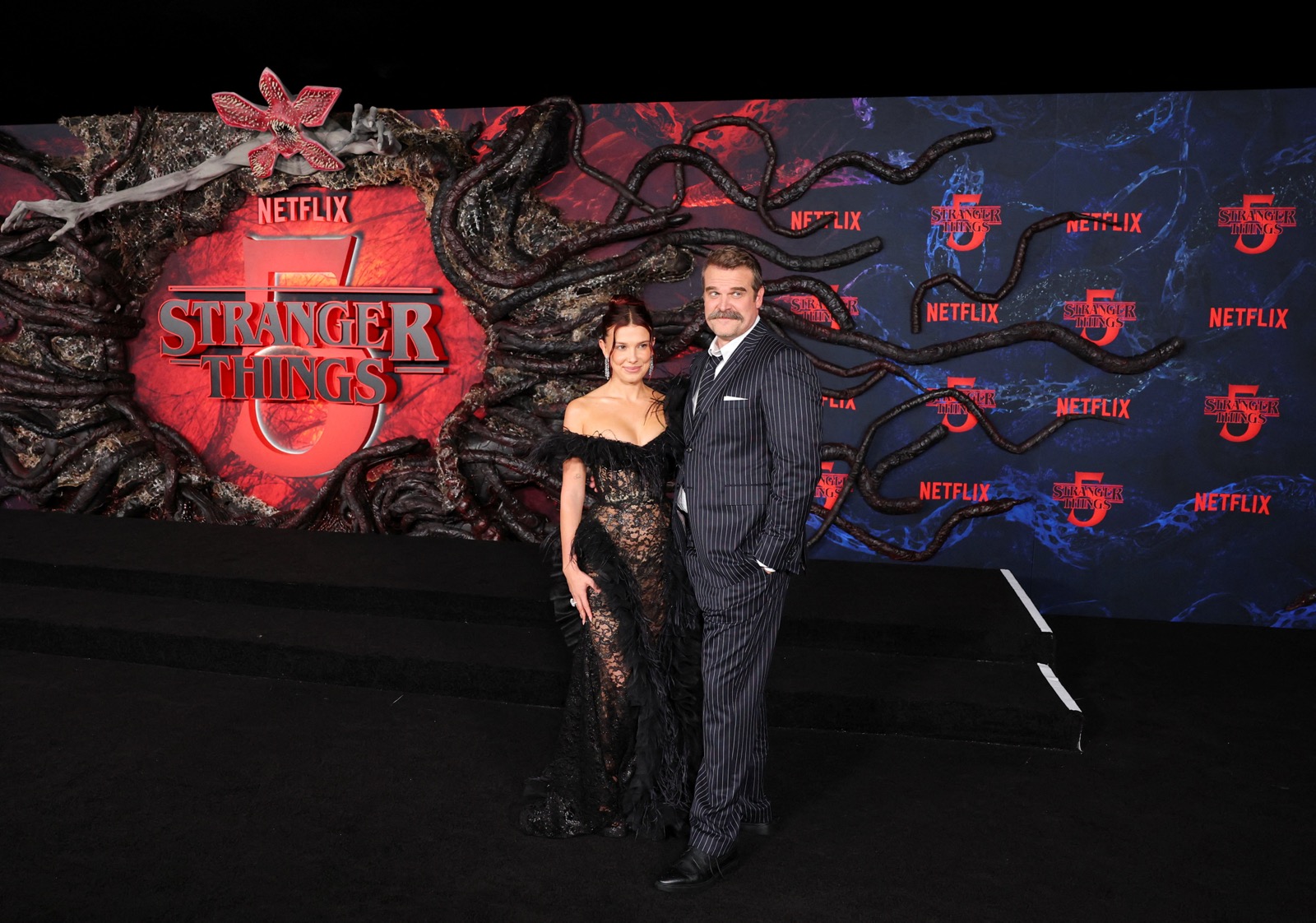 Pour la première mondiale de Stranger Things saison 5, Millie choisit la provocation subtile : un mélange de veuve noire et de vestale, entre glamour occulte et orgasme médiatique parfaitement calibré.
