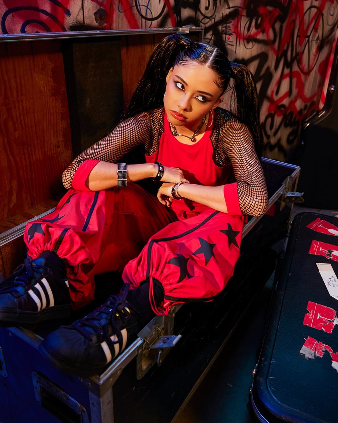 On retrouve même l’énergie insolente qui l’a portée dans Dancing With The Stars, transformant ce shooting en chorégraphie punk parfaitement contrôlée.