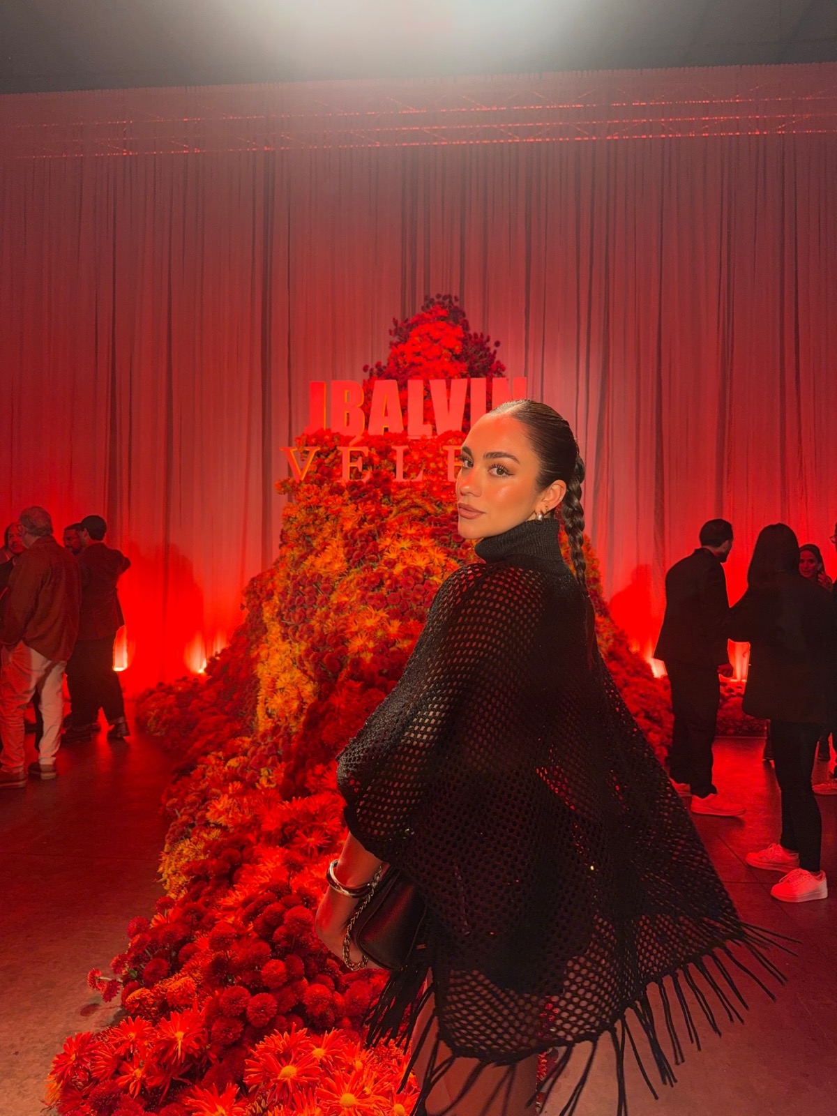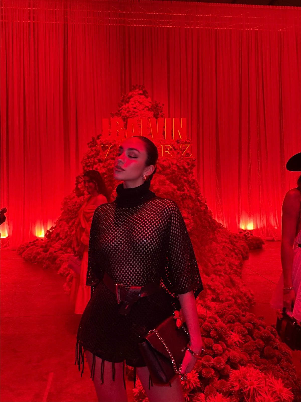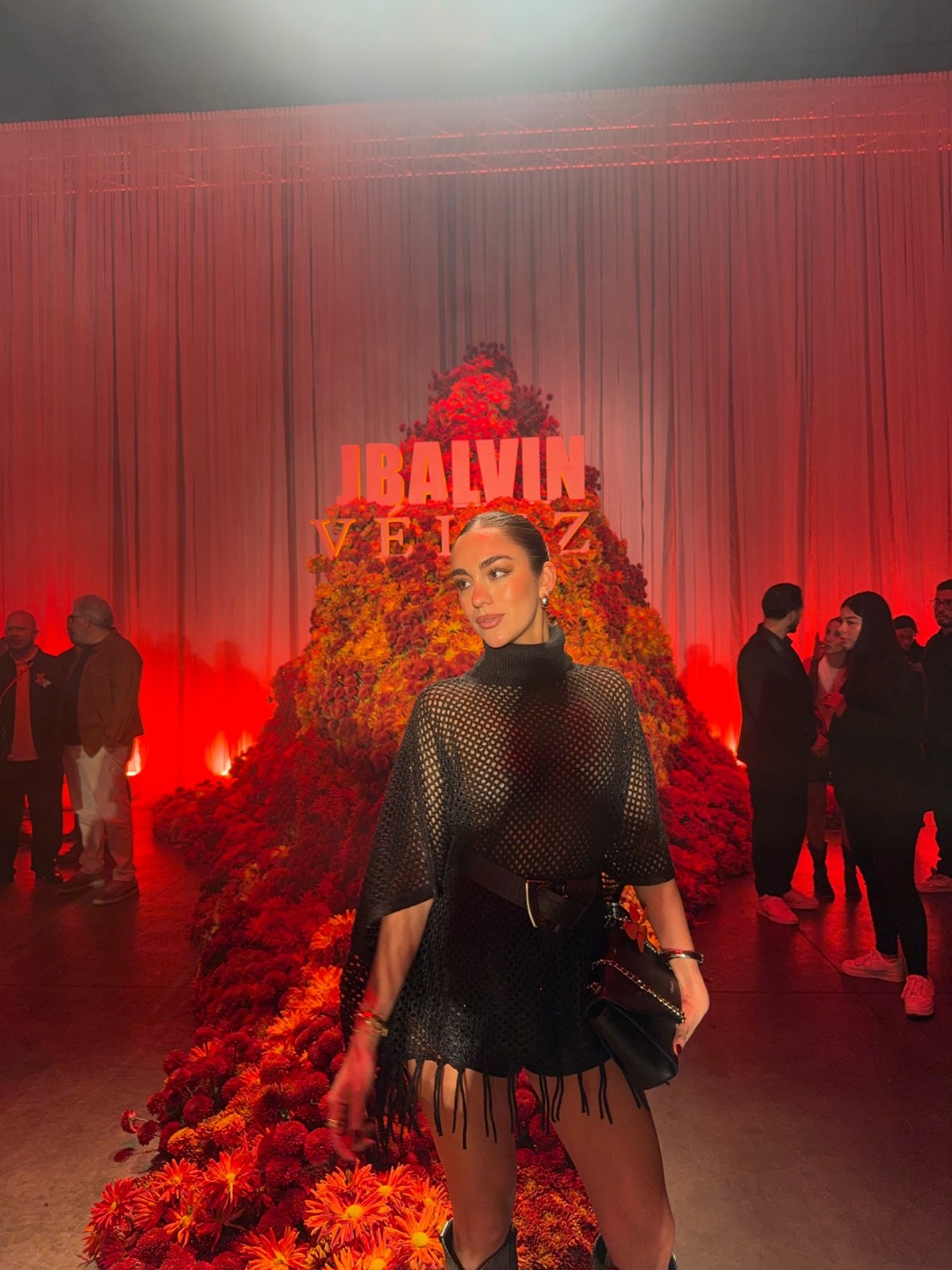 Assise au défilé Beyond Flowers, elle savoure l’agitation, rappelant qu’en bonne créatrice de tumulte, elle jongle entre mode et projets Barron Studios sans jamais perdre son insolence.