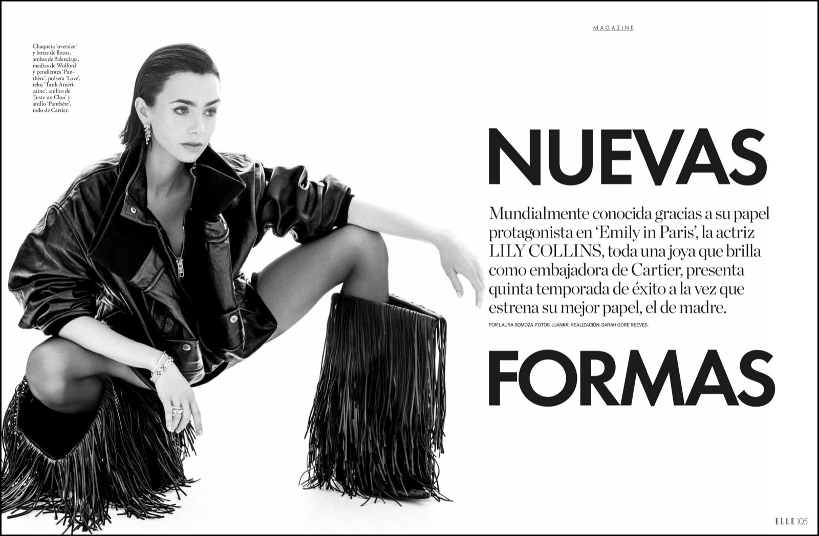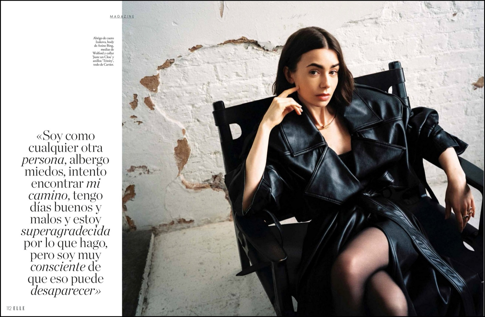 Lily Collins pose pour Elle comme si elle attendait qu’on lui rende sa chaise