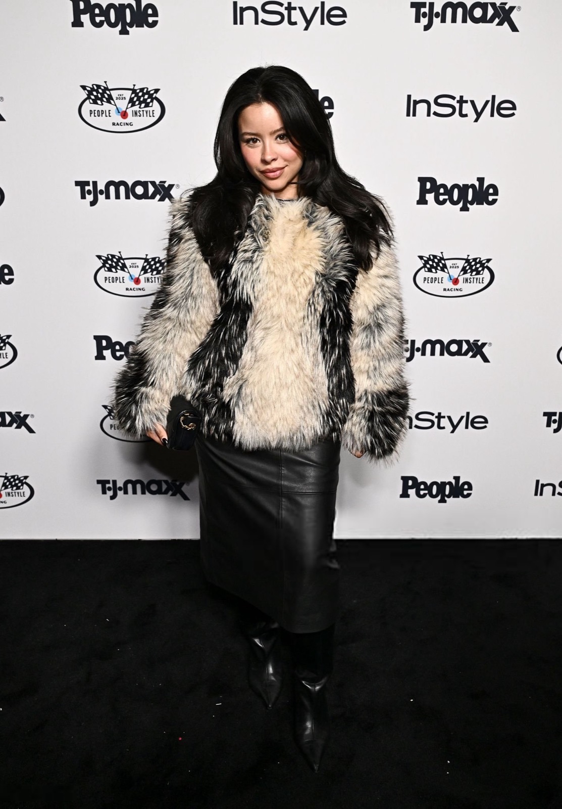 Au photocall People et InStyle de Las Vegas, Cierra Ramirez débarque en reine du faux-froid, perchée dans une fourrure bicolore qui défie toute logique climatique. Son regard joue la malice maîtrisée, comme si elle testait la résistance thermique du tapis noir version F1.