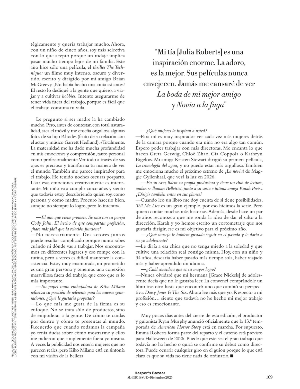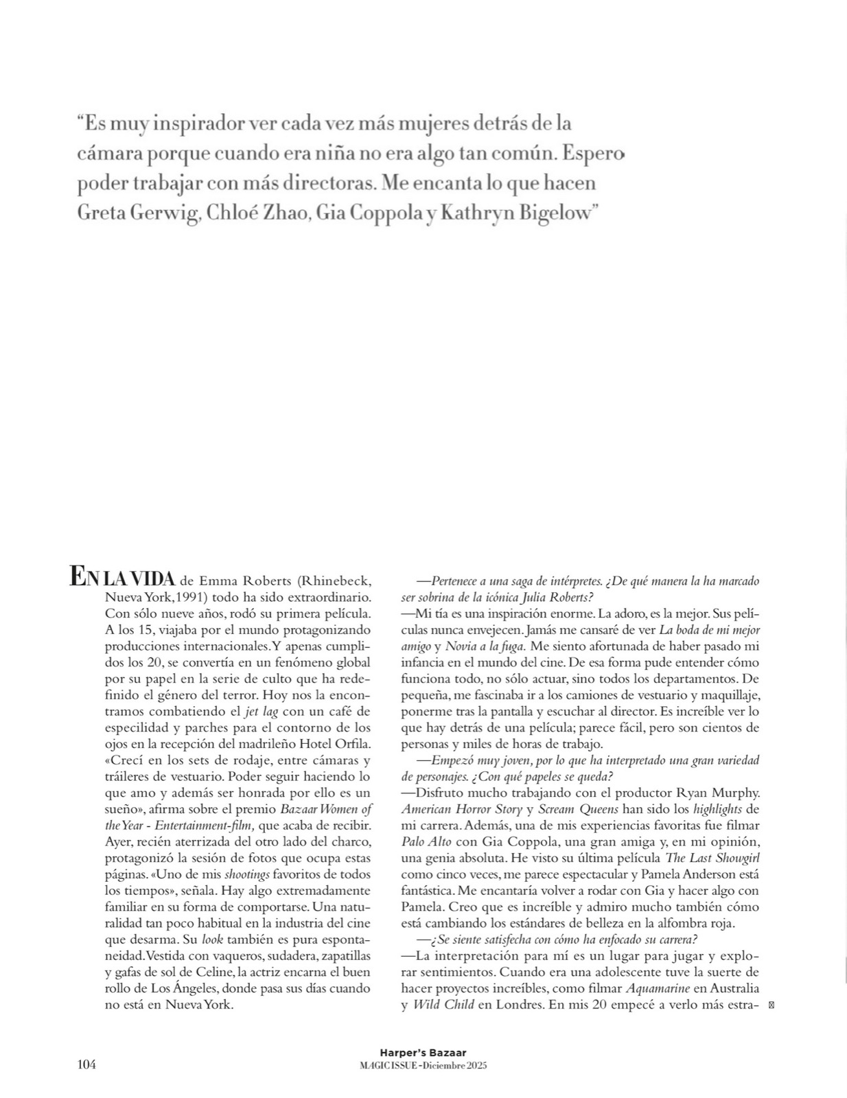 Emma Roberts en vedette dans Harper’s Bazaar Espagne, décembre 2025
