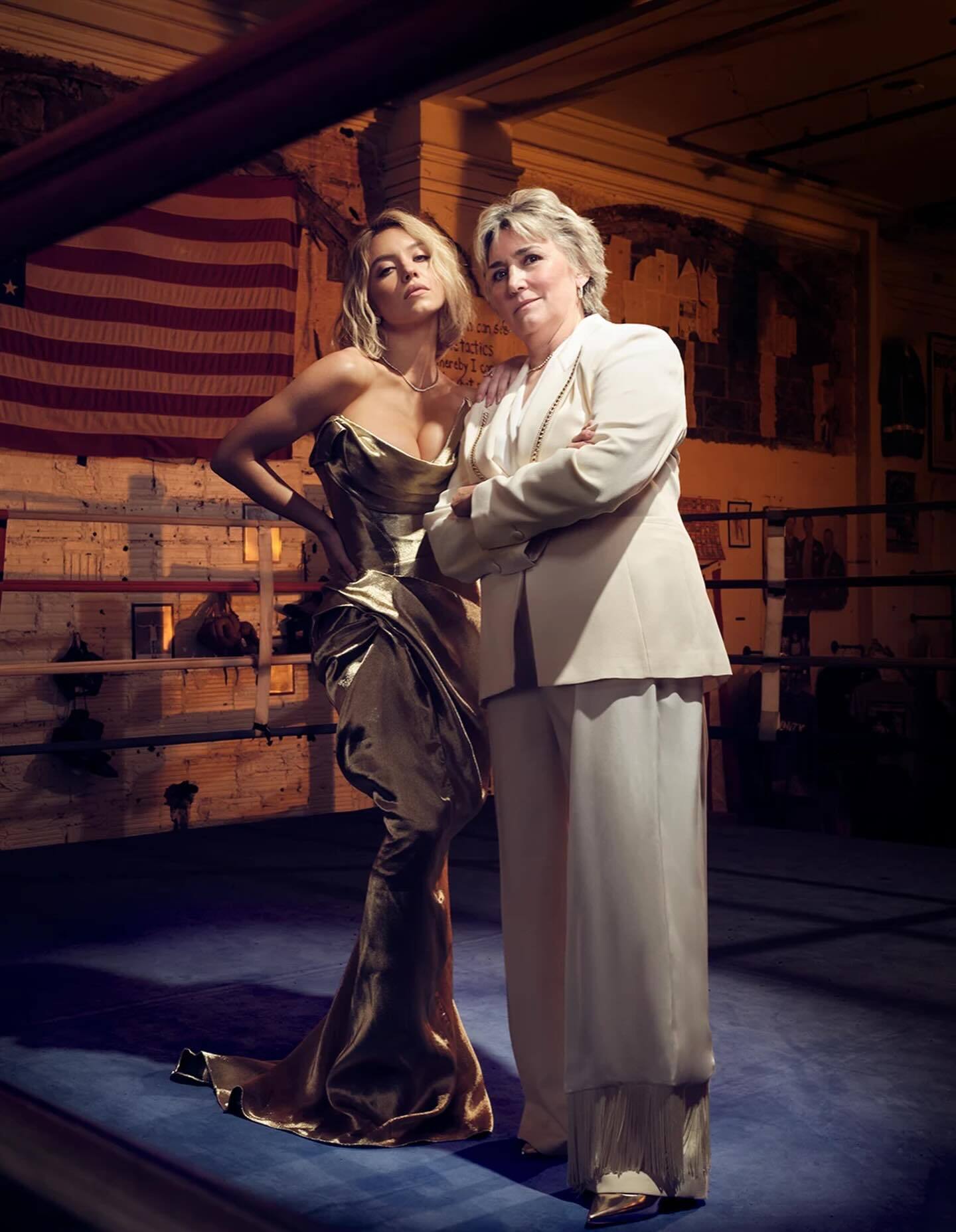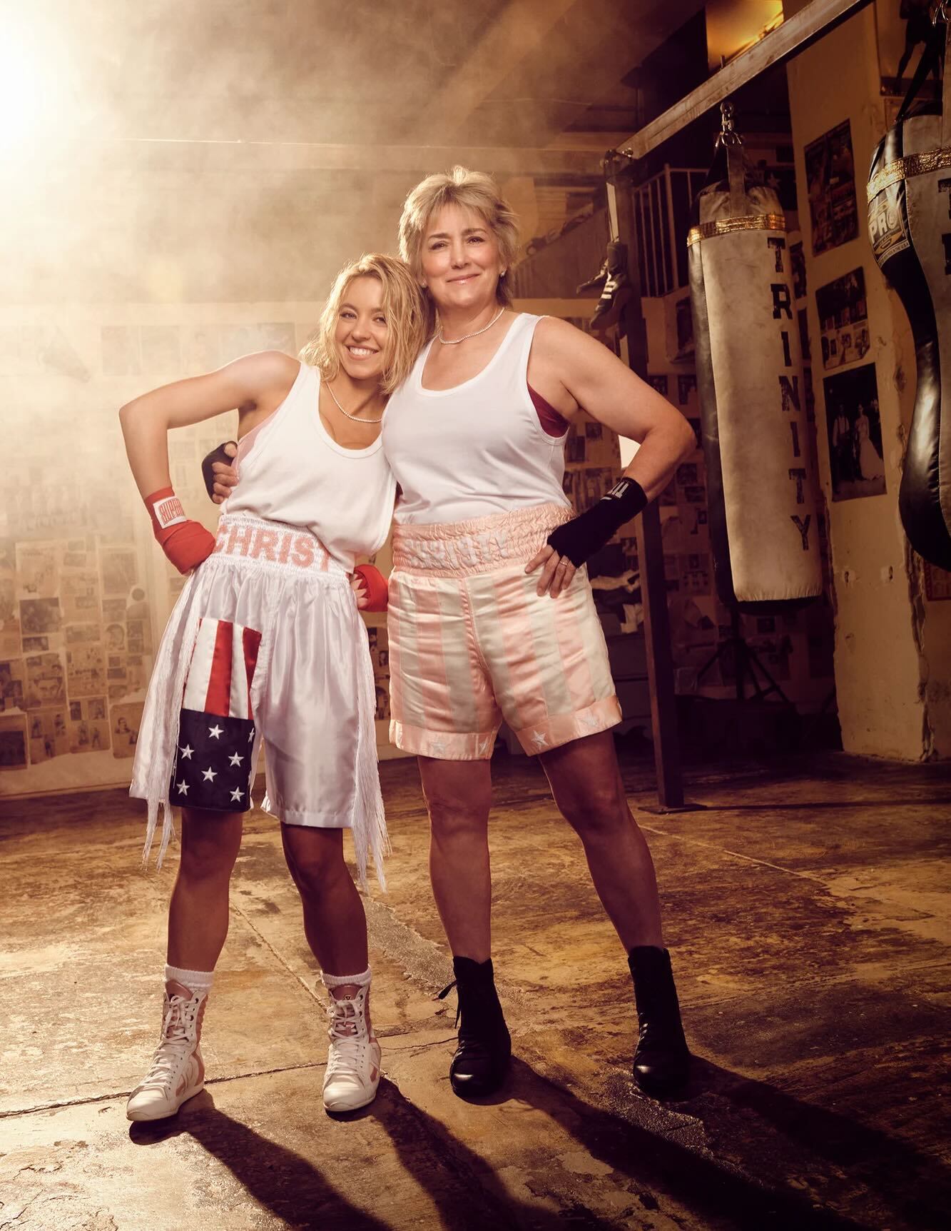 À ses côtés, Christy Martin observe l’élève star avec l’air de celle qui sait très bien que poser “épuisée” demande plus de cardio que trois rounds réels. L’alchimie est mi-coaching, mi-duo improbable de sitcom musclée.