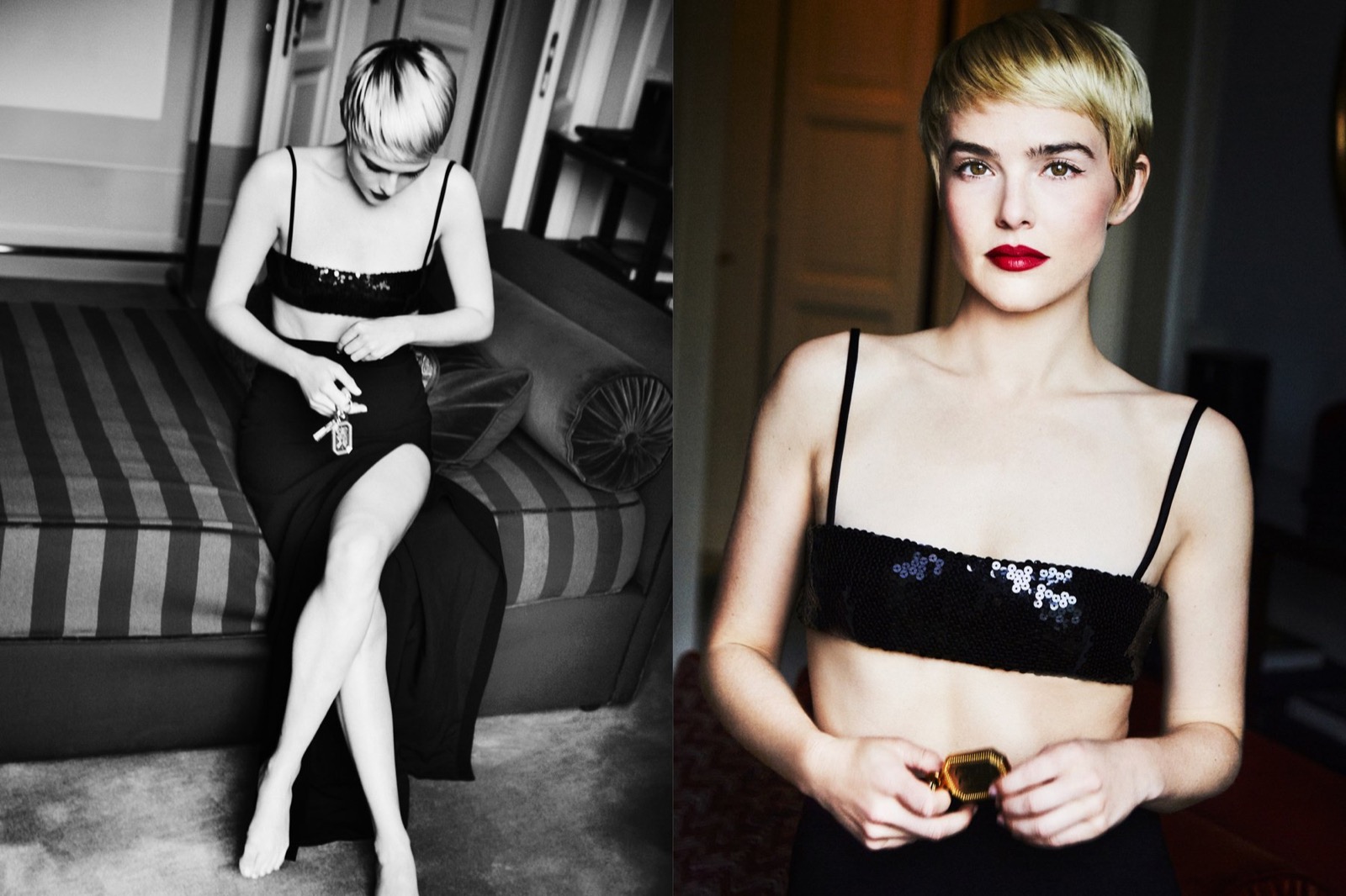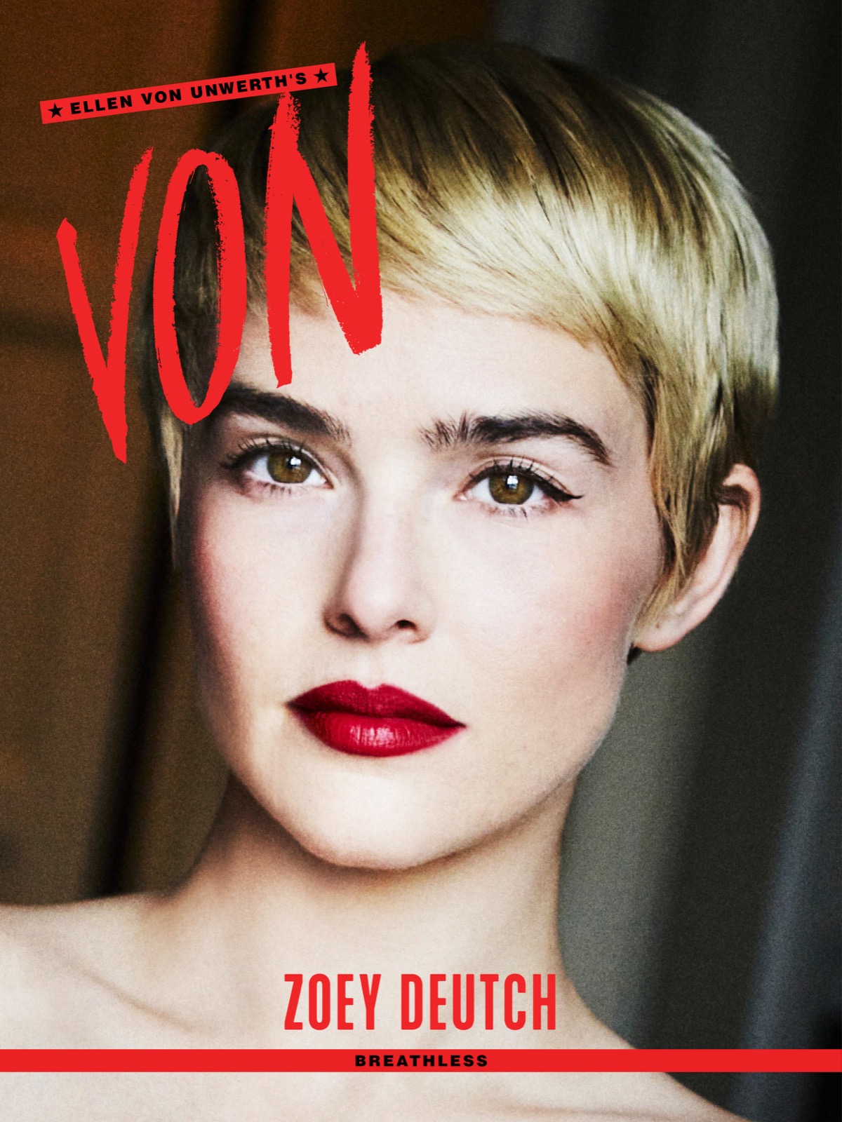 Zoey Deutch s’affiche dans Von version 2025 avec une précision presque insolente. Coupe ultra-courte, peau nue, lèvres rouges nettes : chaque image coupe court à la politesse.