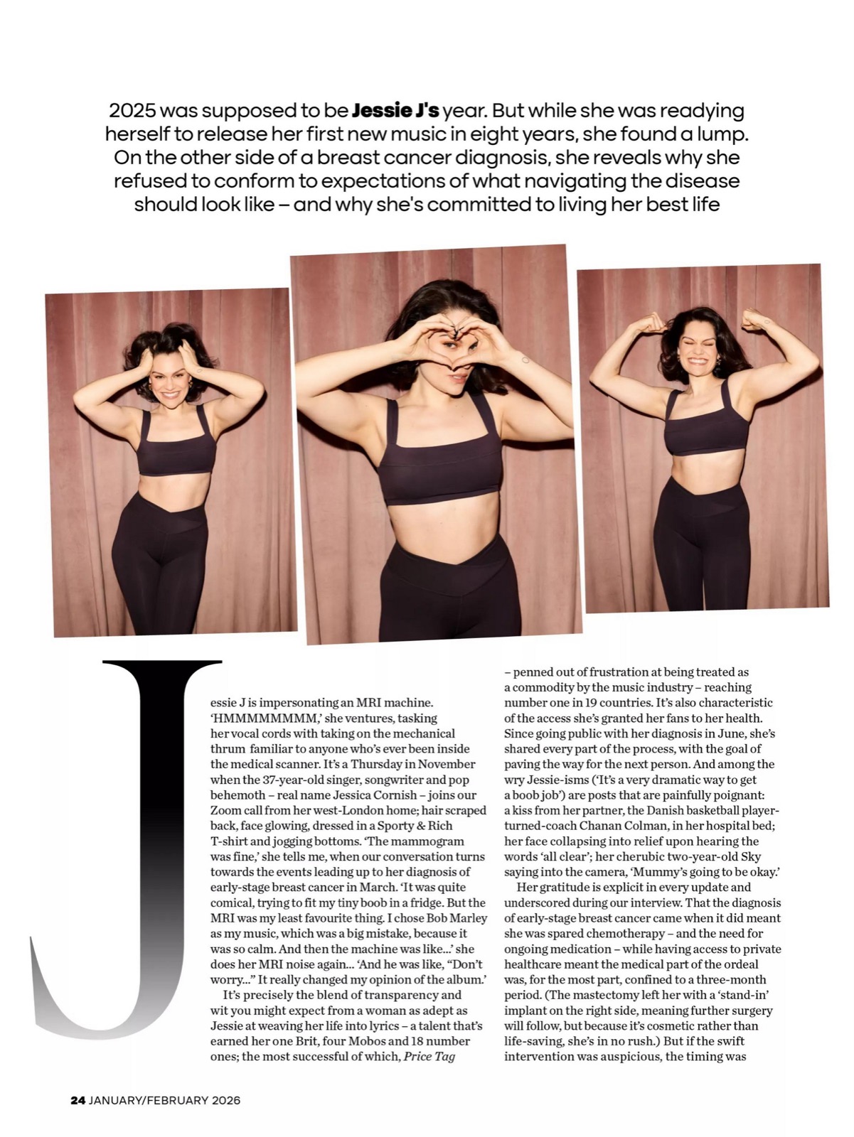 Entre force assumée et élégance tranchante, Jessie J joue la carte du réel stylisé. Pas de drama, pas de fragilité surjouée : juste une présence dense, directe, qui transforme la couverture en manifeste silencieux.