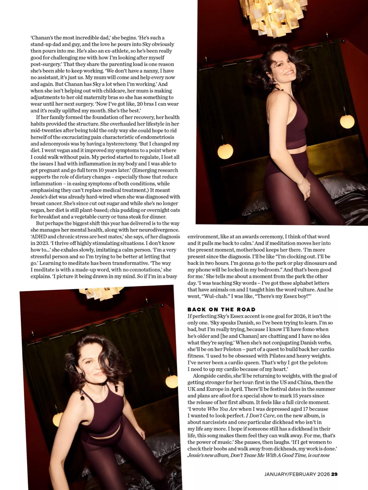 Jessie J s’impose en couverture de Women’s Health UK dans un body bordeaux qui dit tout : contrôle, tension, assurance. Bras levés, regard calme, elle pose comme on pose une vérité qui dérange, sans demander l’autorisation.