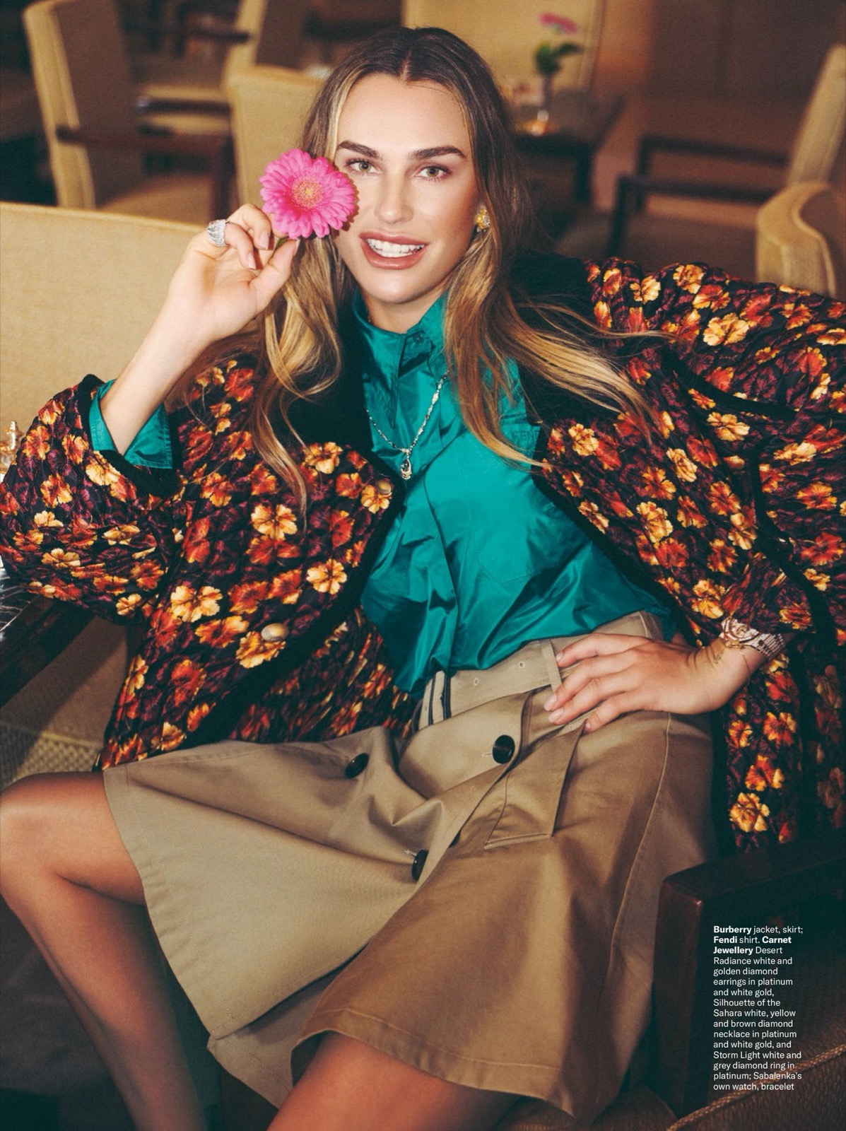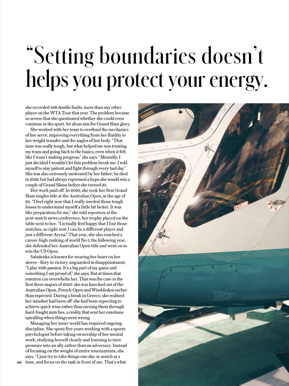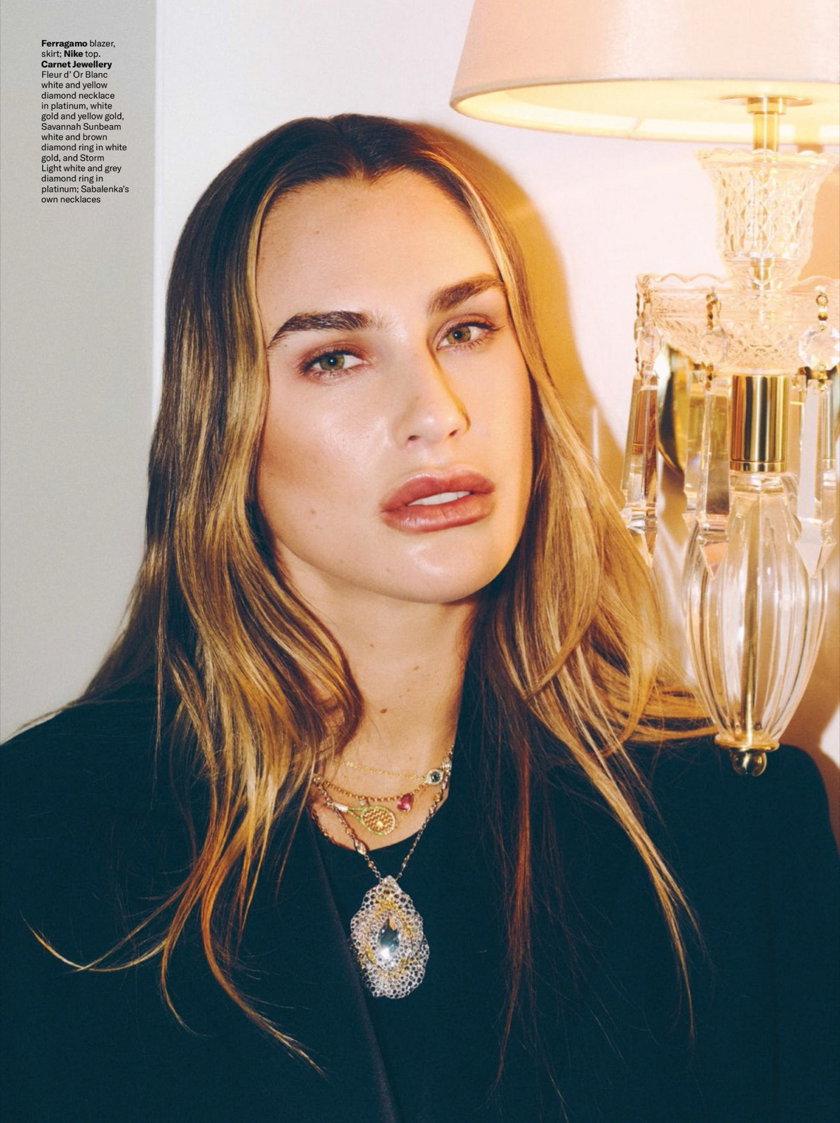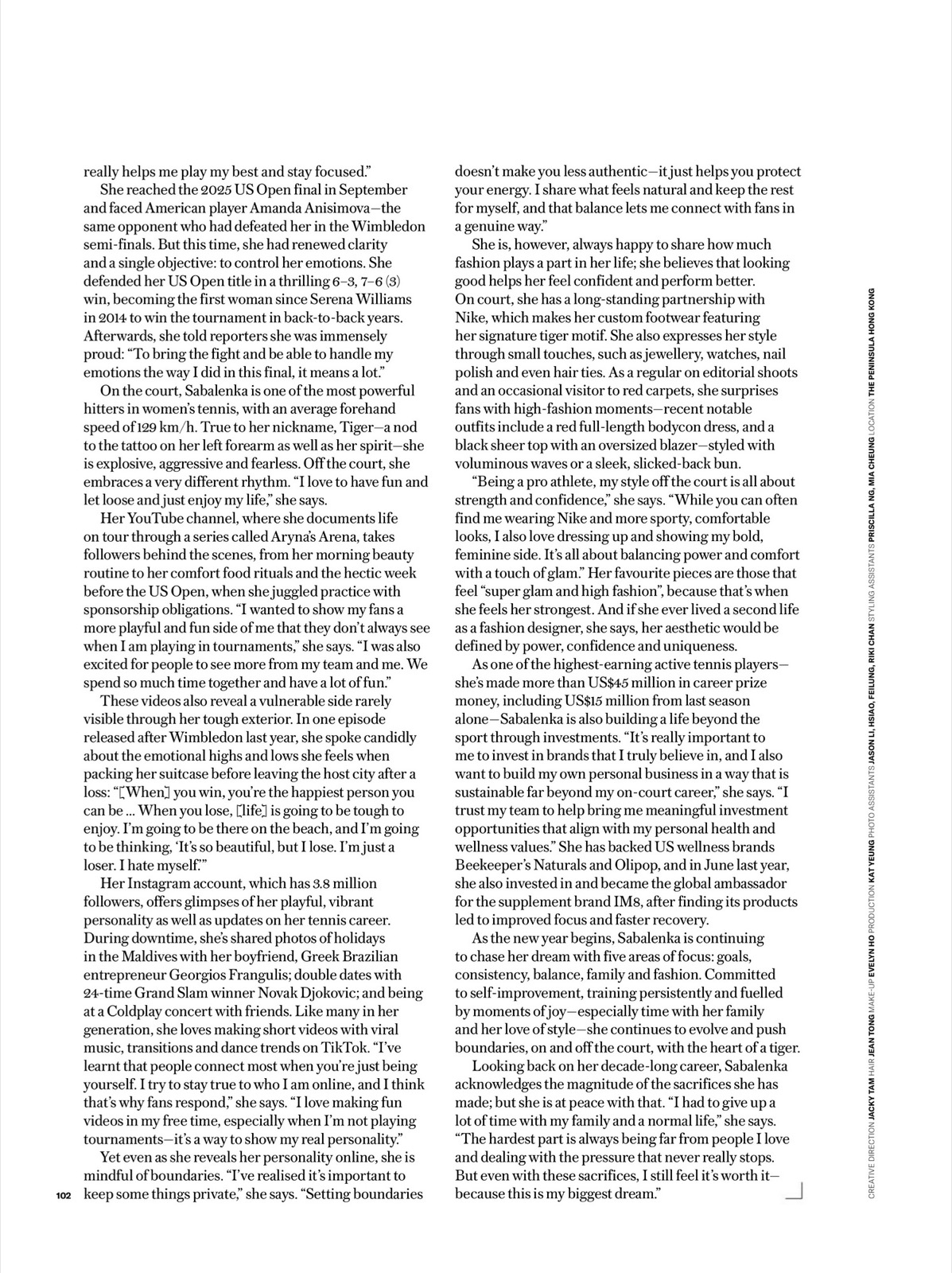 Aryna Sabalenka en couverture de Tatler Hong Kong, tennis posé sur tapis chic