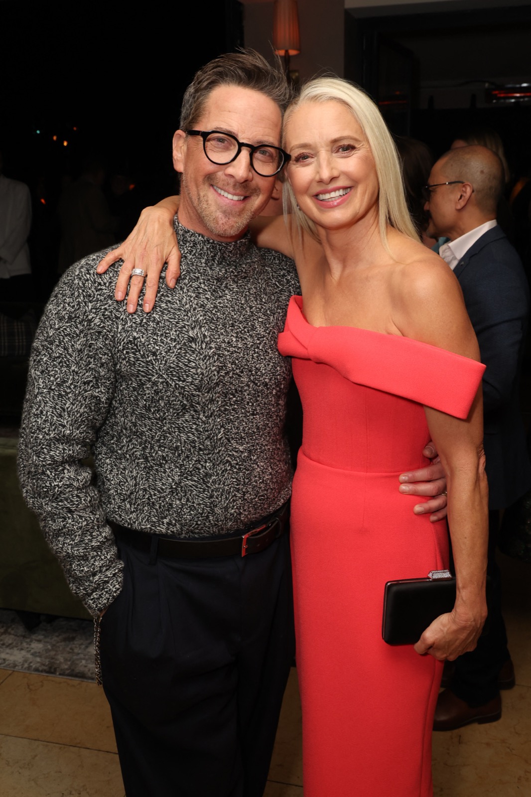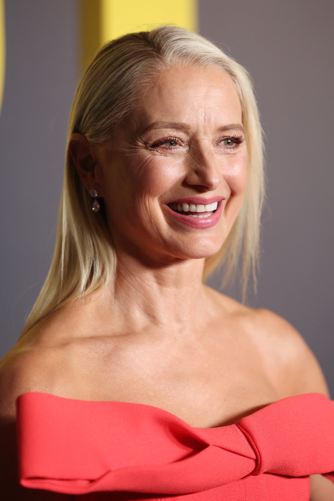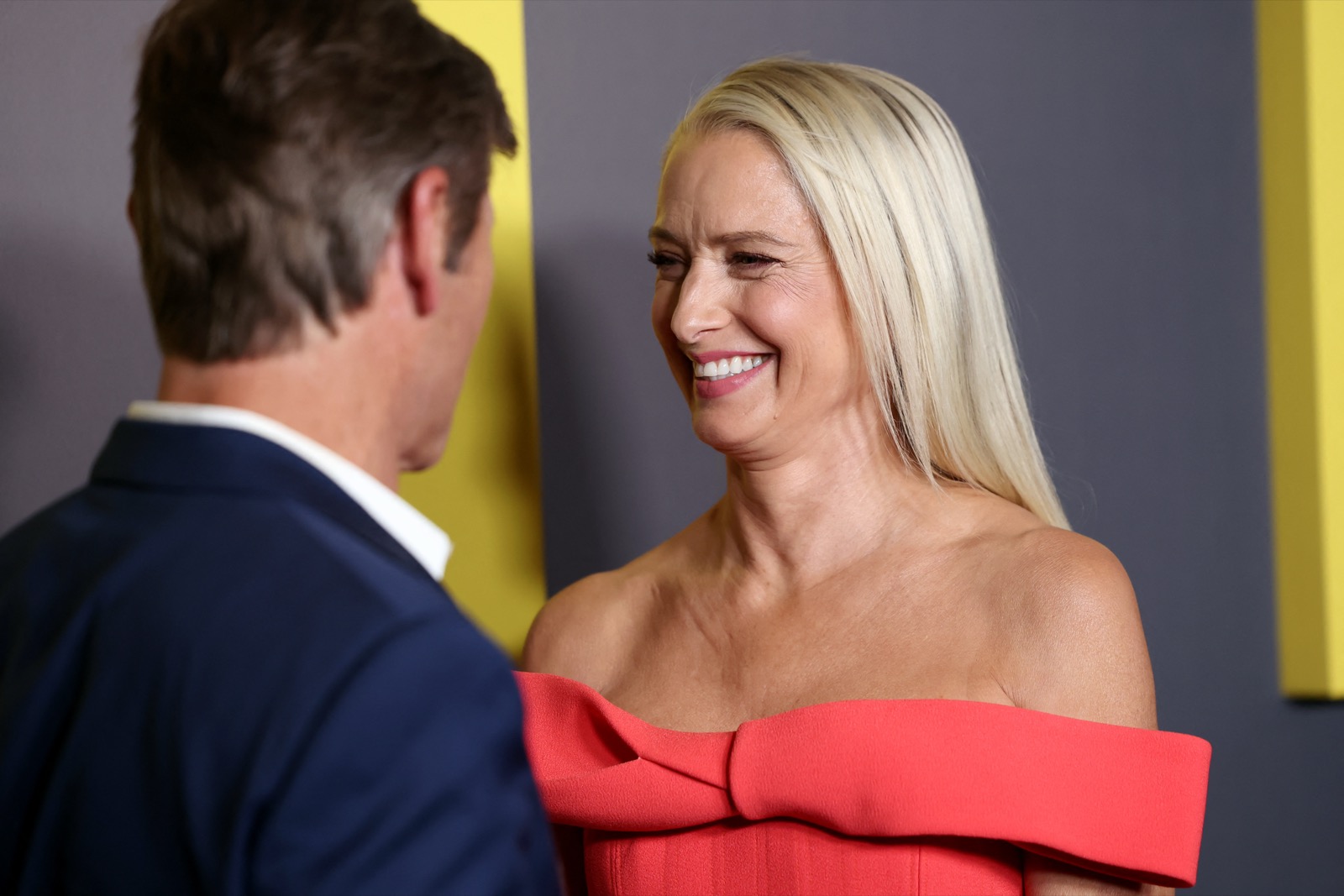 Katherine LaNasa à la première L.A. de The Pitt, robe corail en alerte