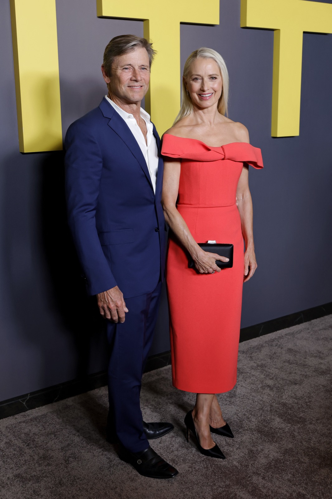 Pochette noire crispée, sourire calibré, elle affronte le tapis comme un exercice d’évacuation glamour. Los Angeles applaudit, la série promet du chaos, et la tenue lutte pour rester chic face à un mur jaune qui joue les gyrophares trop zélés.