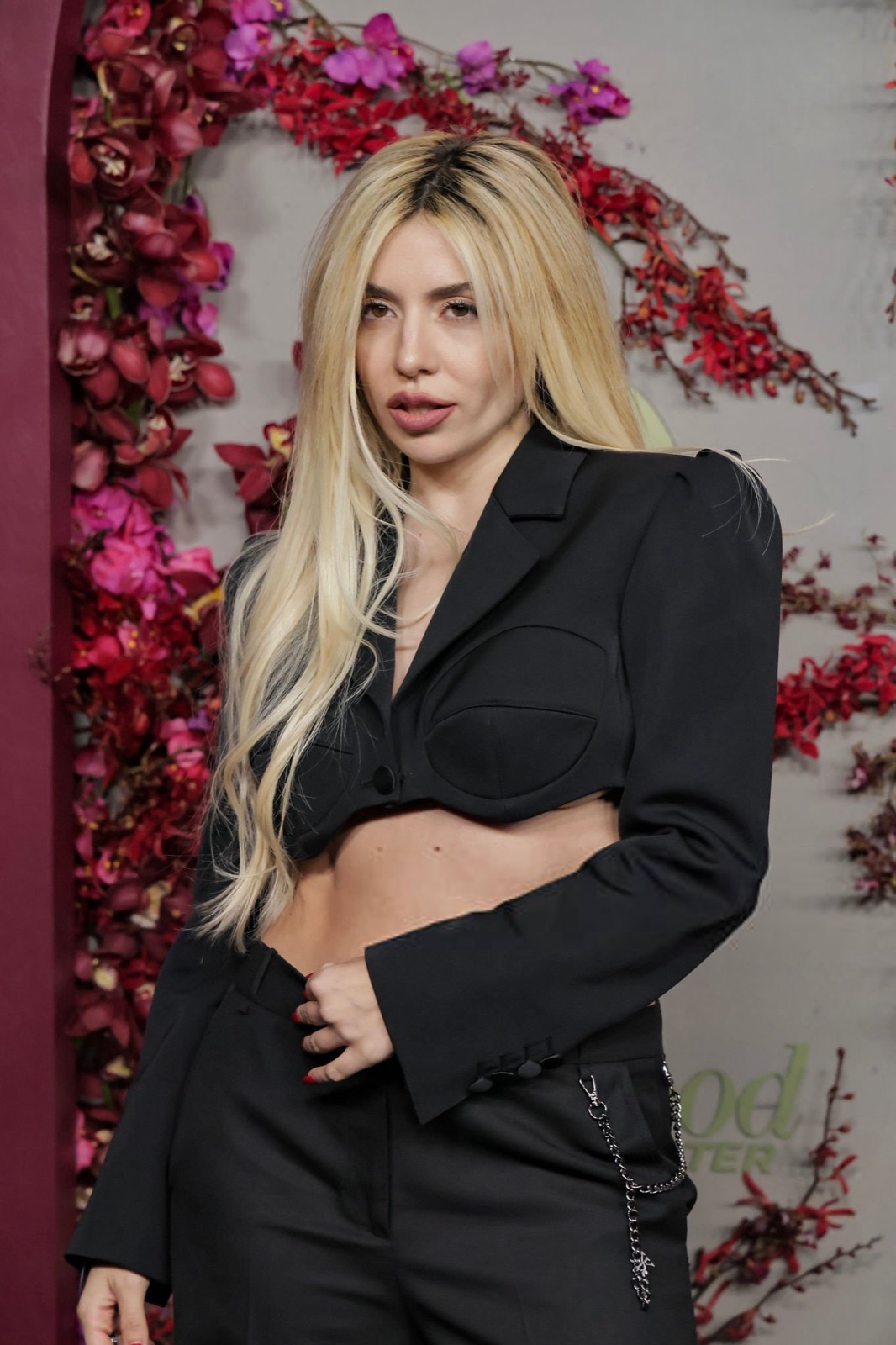 Ava Max à la Golden Week de Spotify, costume sérieux ventre en roue libre