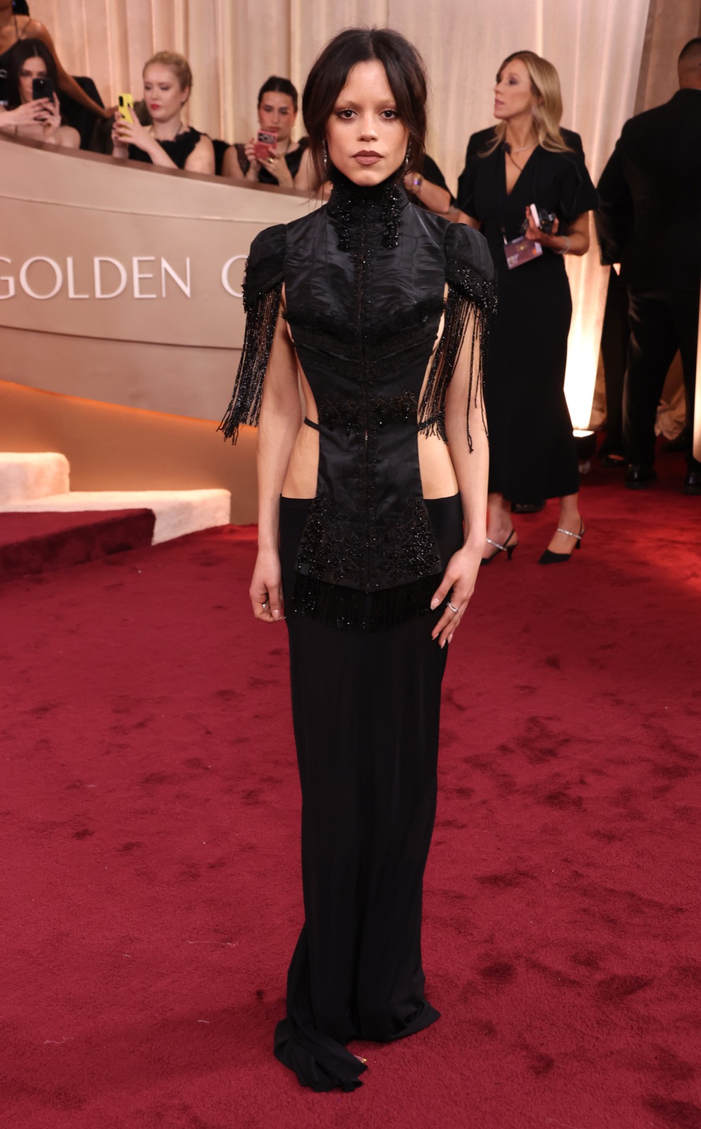 Jenna Ortega aux Golden Globe Awards gala, corset affamé