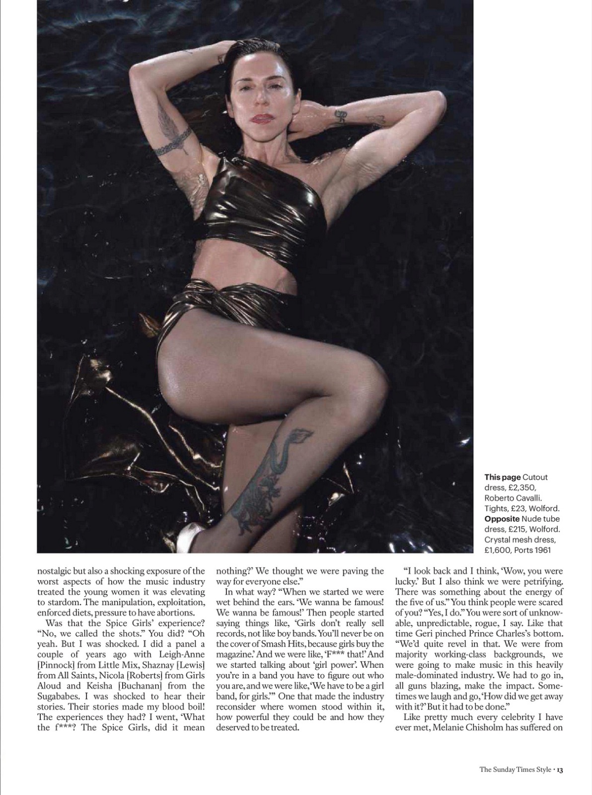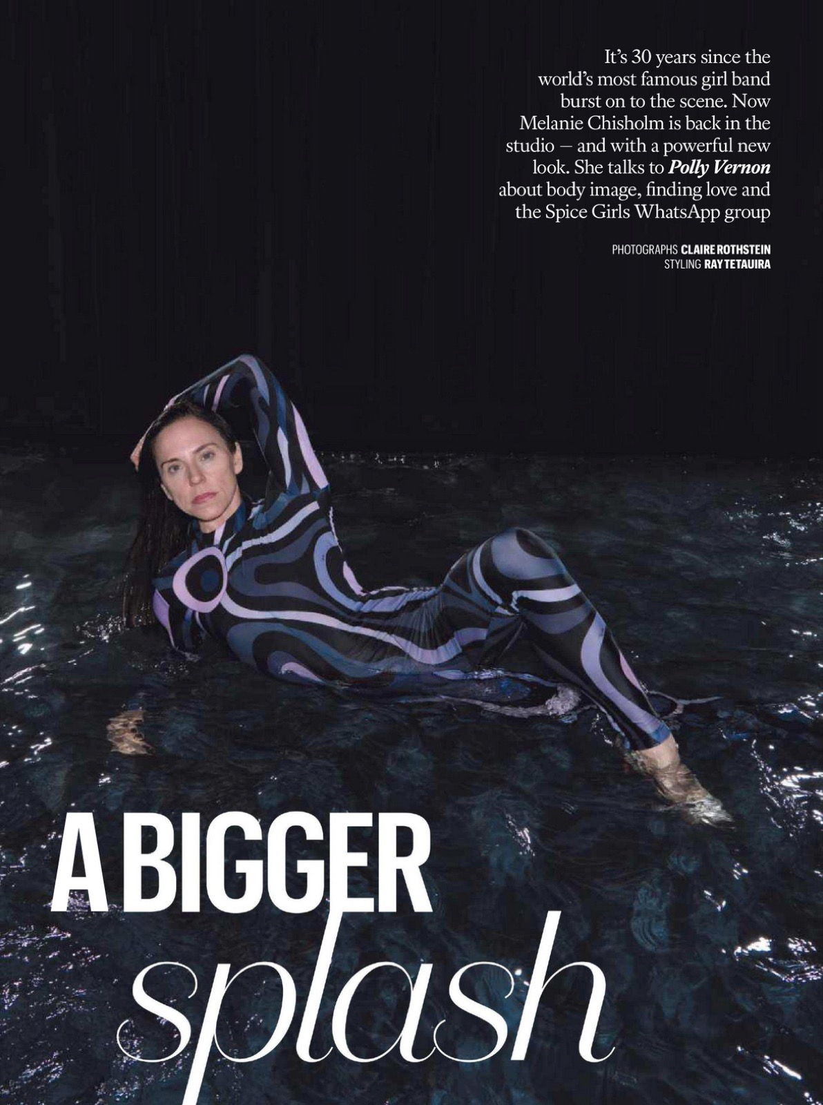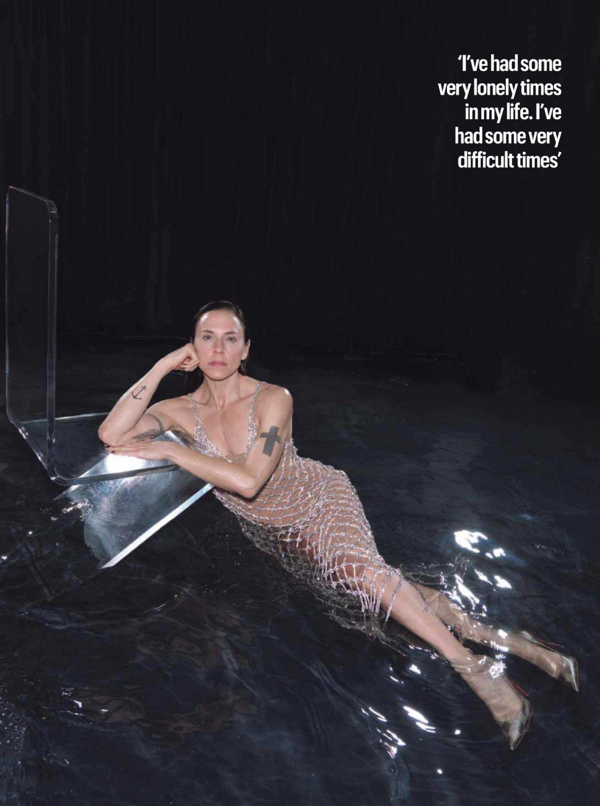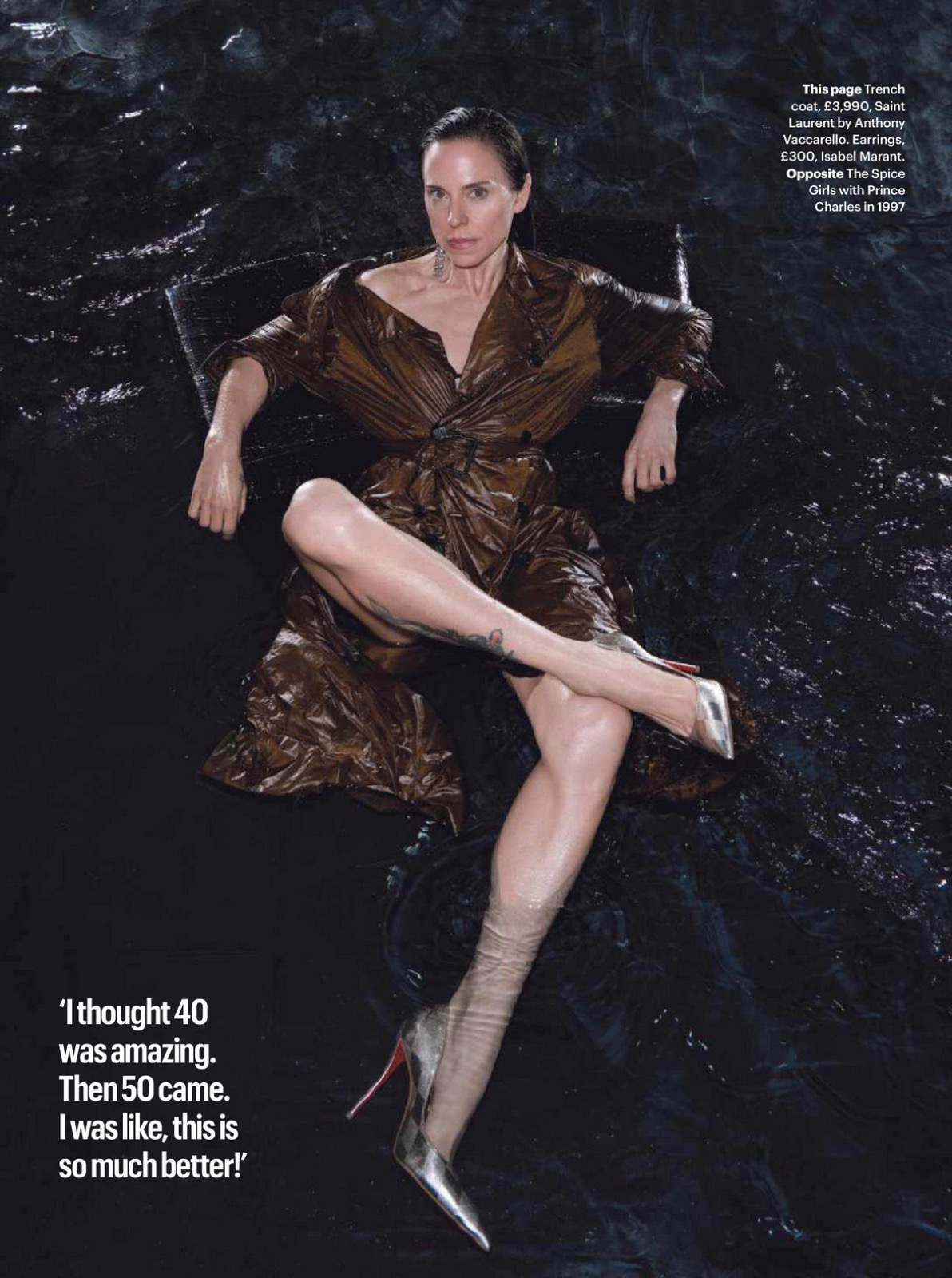 Pour The Sunday Times Style, ce shooting vend image et puissance, et Mel C, ancienne Spice Girls devenue solo solide, prouve qu’à cinquante ans passés elle sait encore occuper l’eau, la page, et le regard.