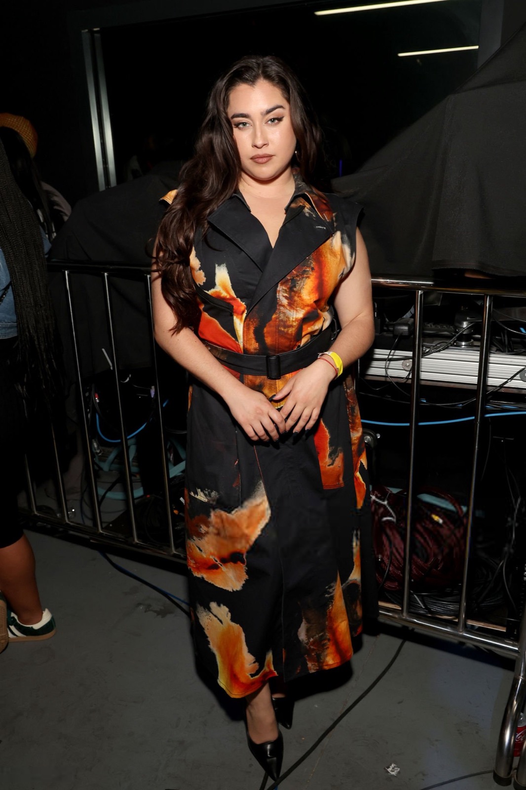 Lauren Jauregui débarque au Dolla $ign & Friends à Los Angeles dans une robe noire couverte de flammes géantes, ceinturée bien serré. On dirait qu’elle transporte le brasier sans transpirer. Mini-vanne : même le décor hésite à s’approcher.