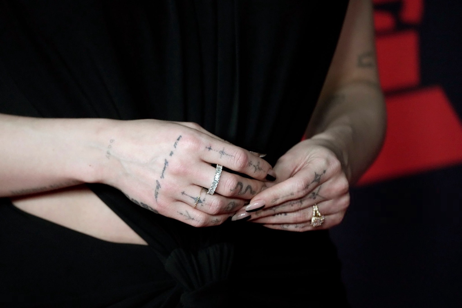 Robe noire nouée à la taille, dos complètement dévoilé, elle transforme le tapis rouge en séance d’hypnose textile sans cligner des yeux.