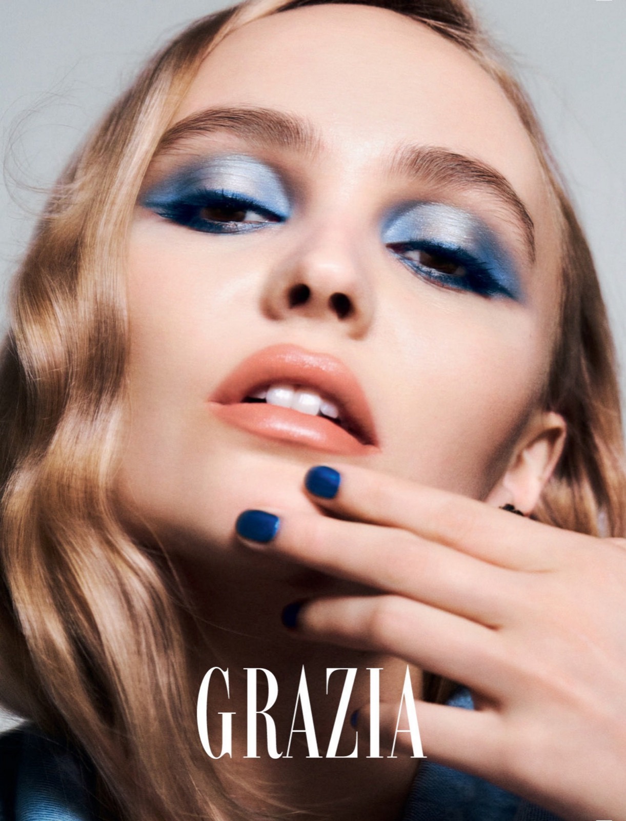 Lily-Rose Depp pour Grazia Mexico, smoky bleu, regard nucléaire