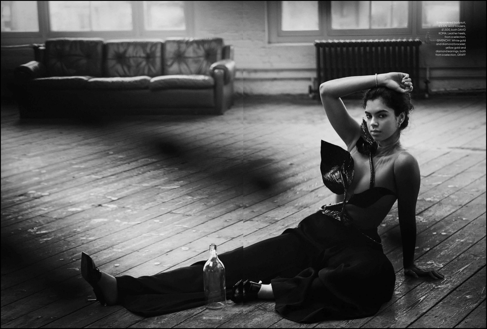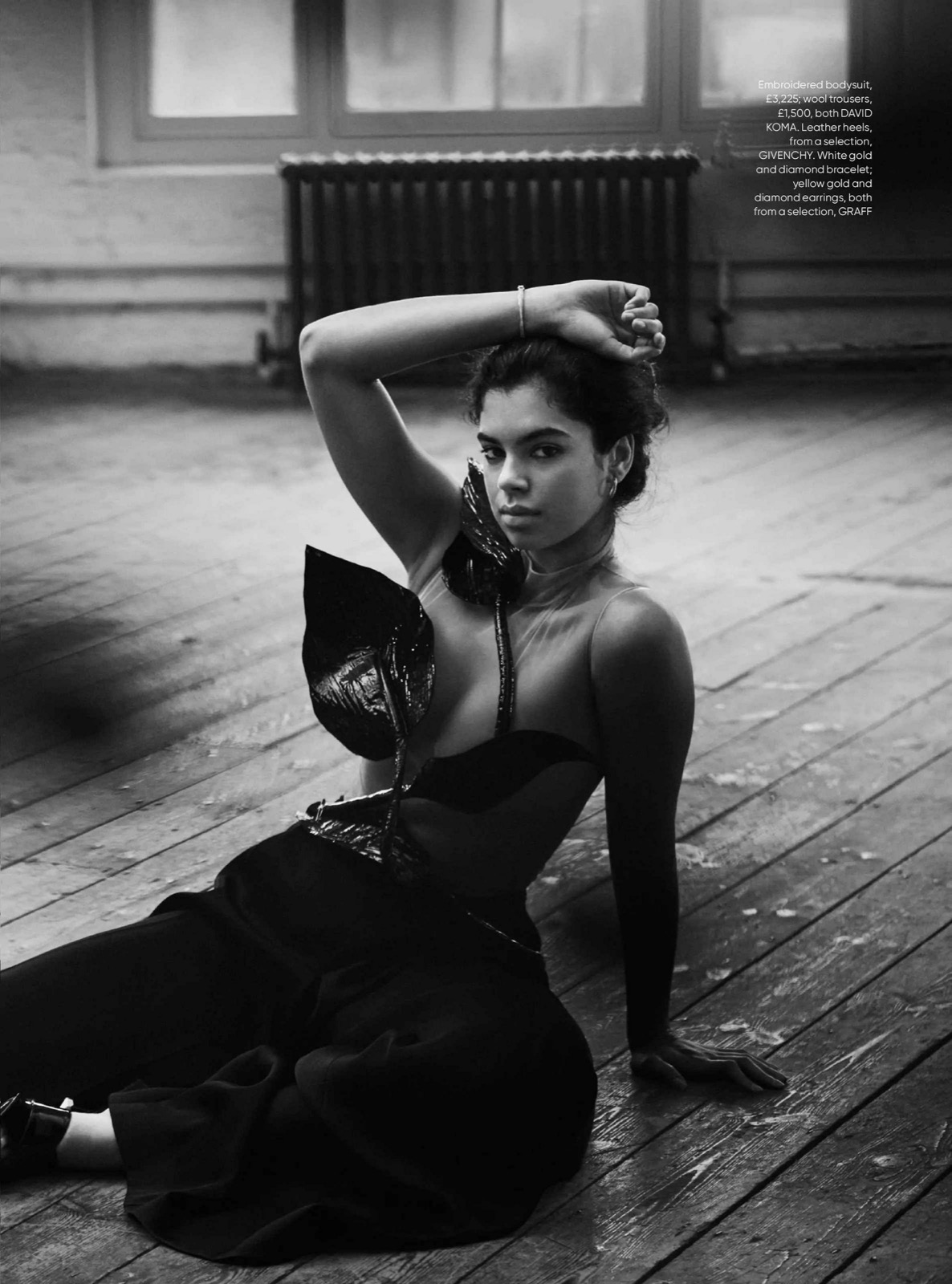 Emeline Hoareau pour Harper’s Bazaar UK, cuir sage buste insolent