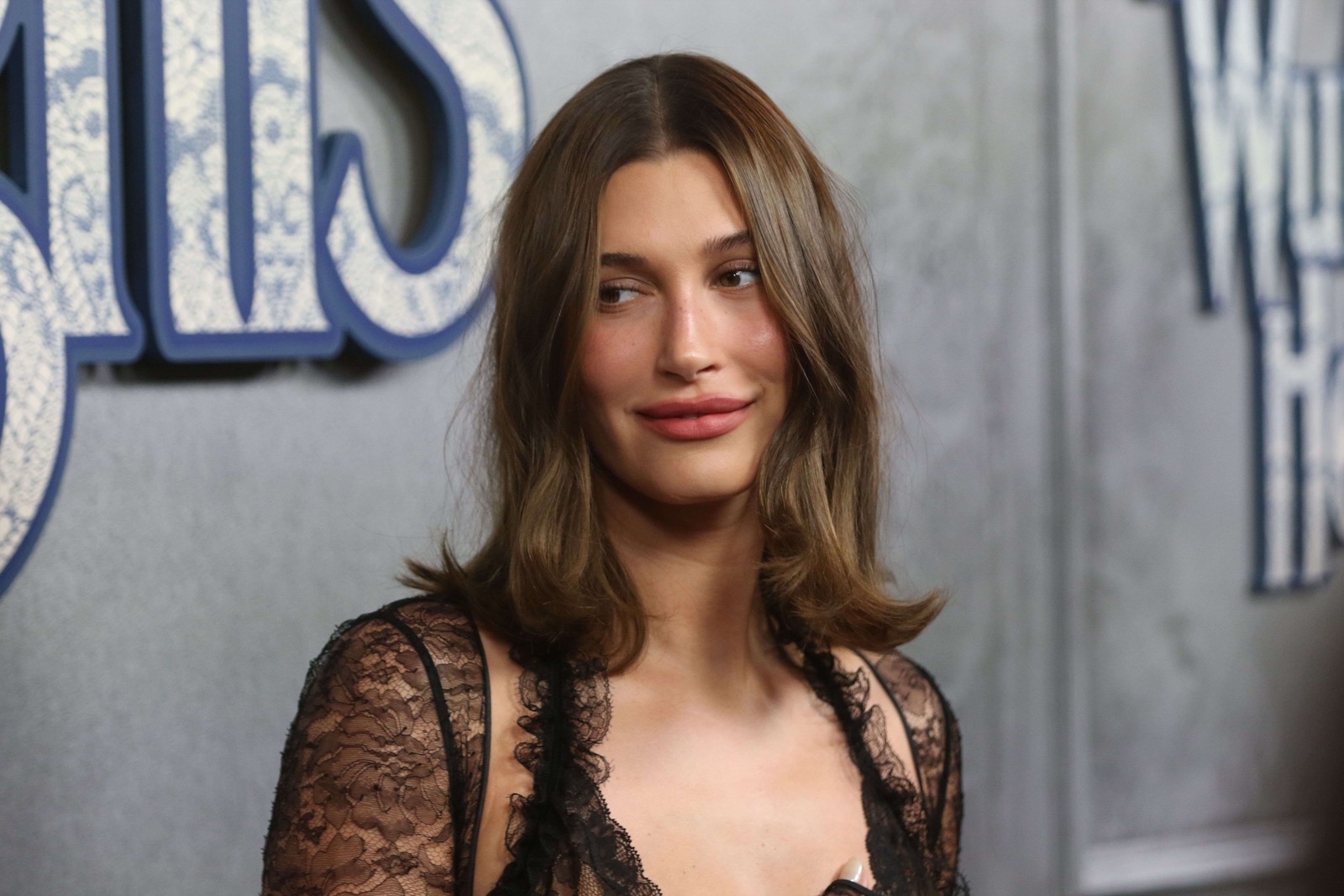 Hailey Bieber à Wuthering Heights, dentelle sage, transparence rebelle