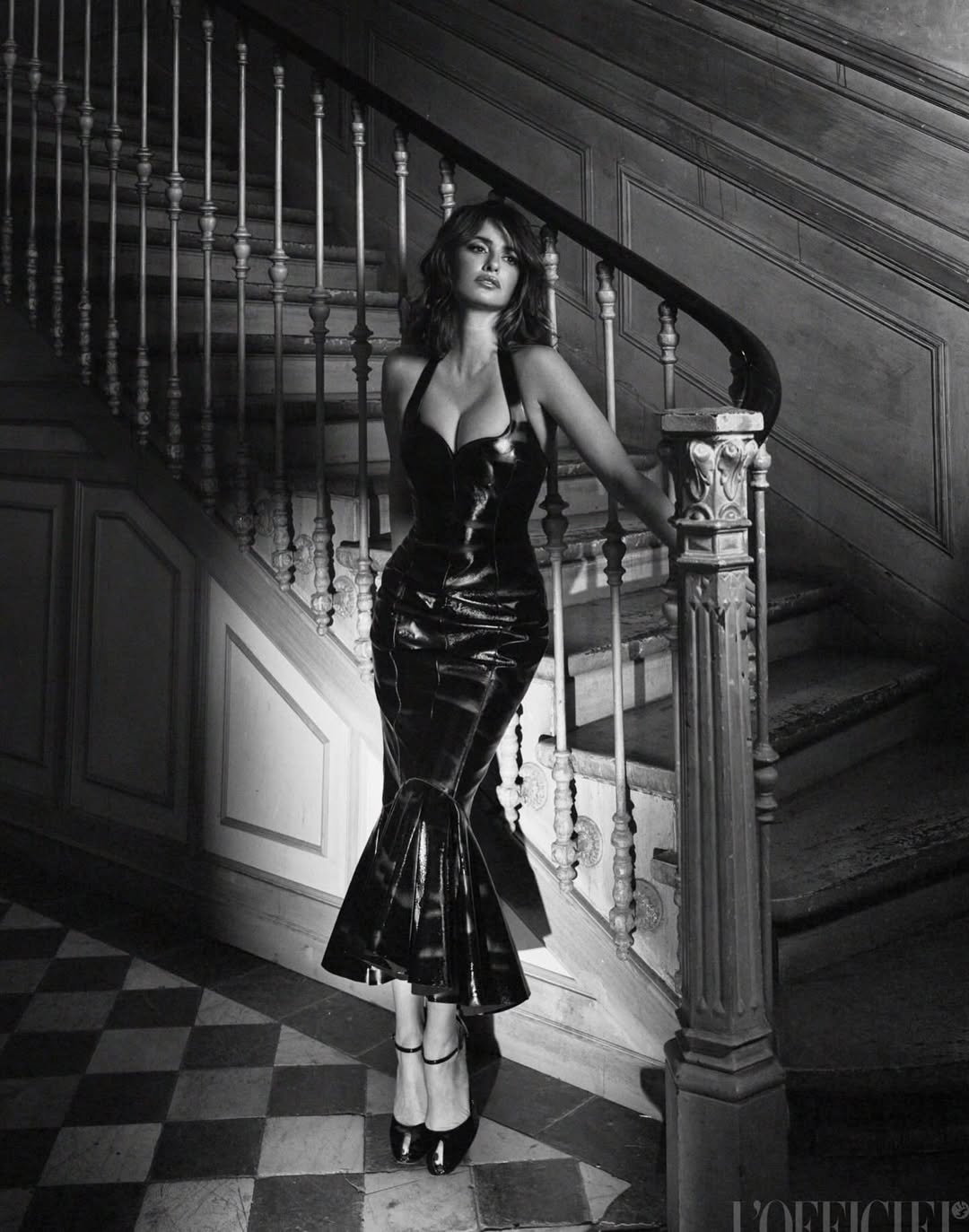 Penelope Cruz pose pour Perfect Magazine, latex sage, escalier pas sage