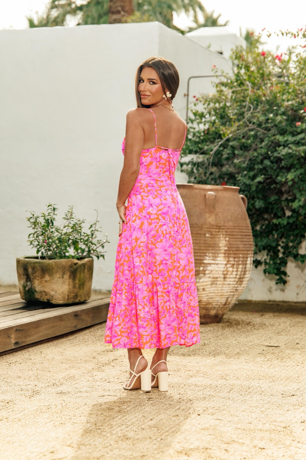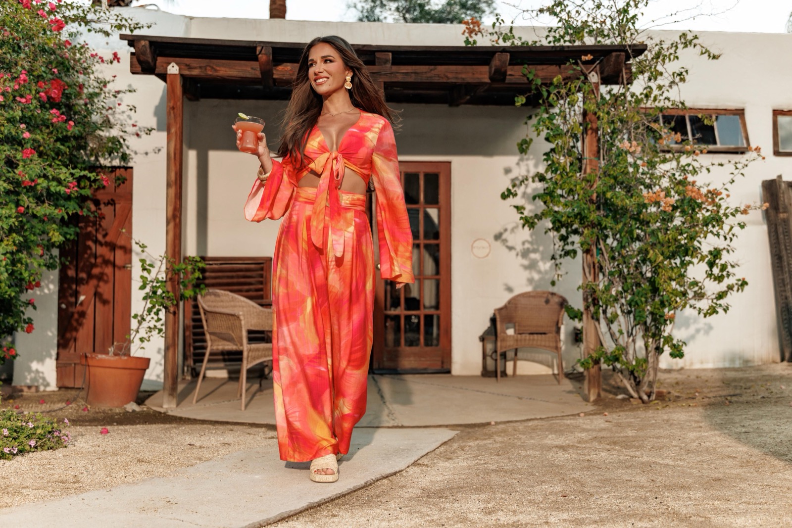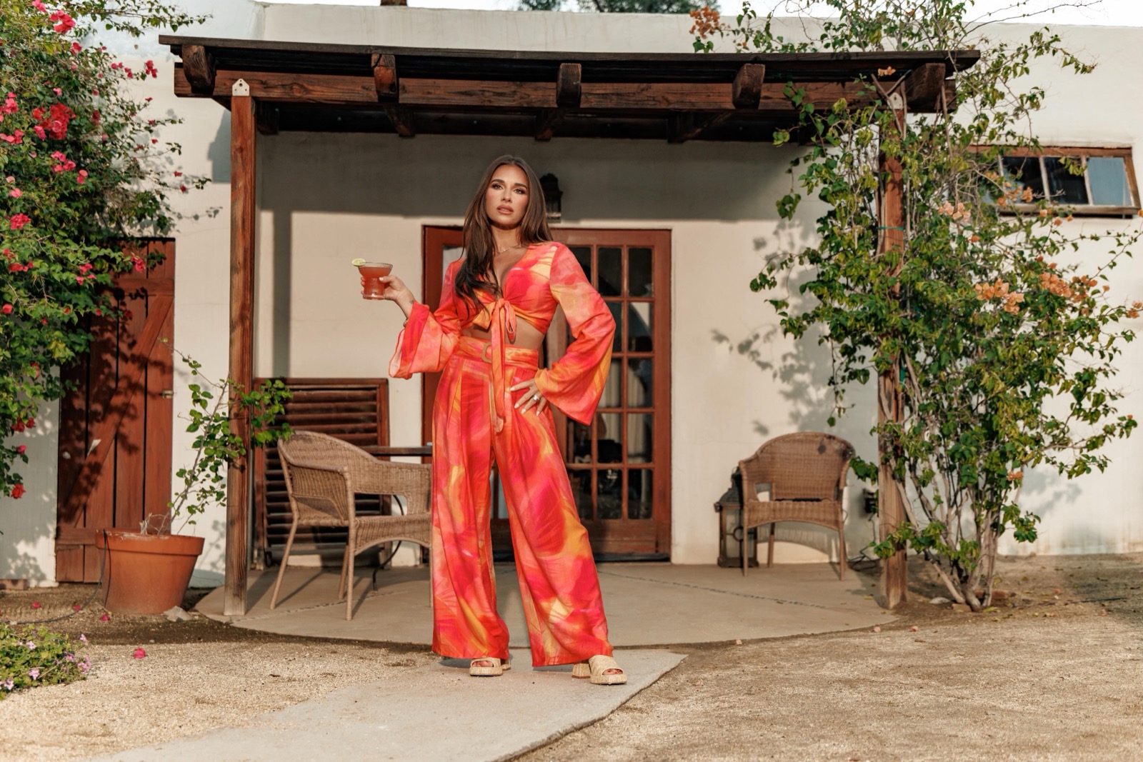 Sur le décor ensoleillé de la collection Casa del Sol pour Cupshe, Jessie James Decker s’étire au bord de la piscine. Bikini rose vif, peau dorée, cheveux mouillés : la scène démarre fort.