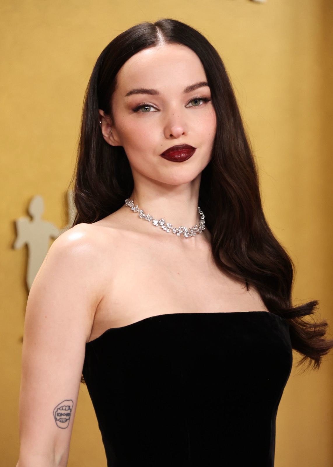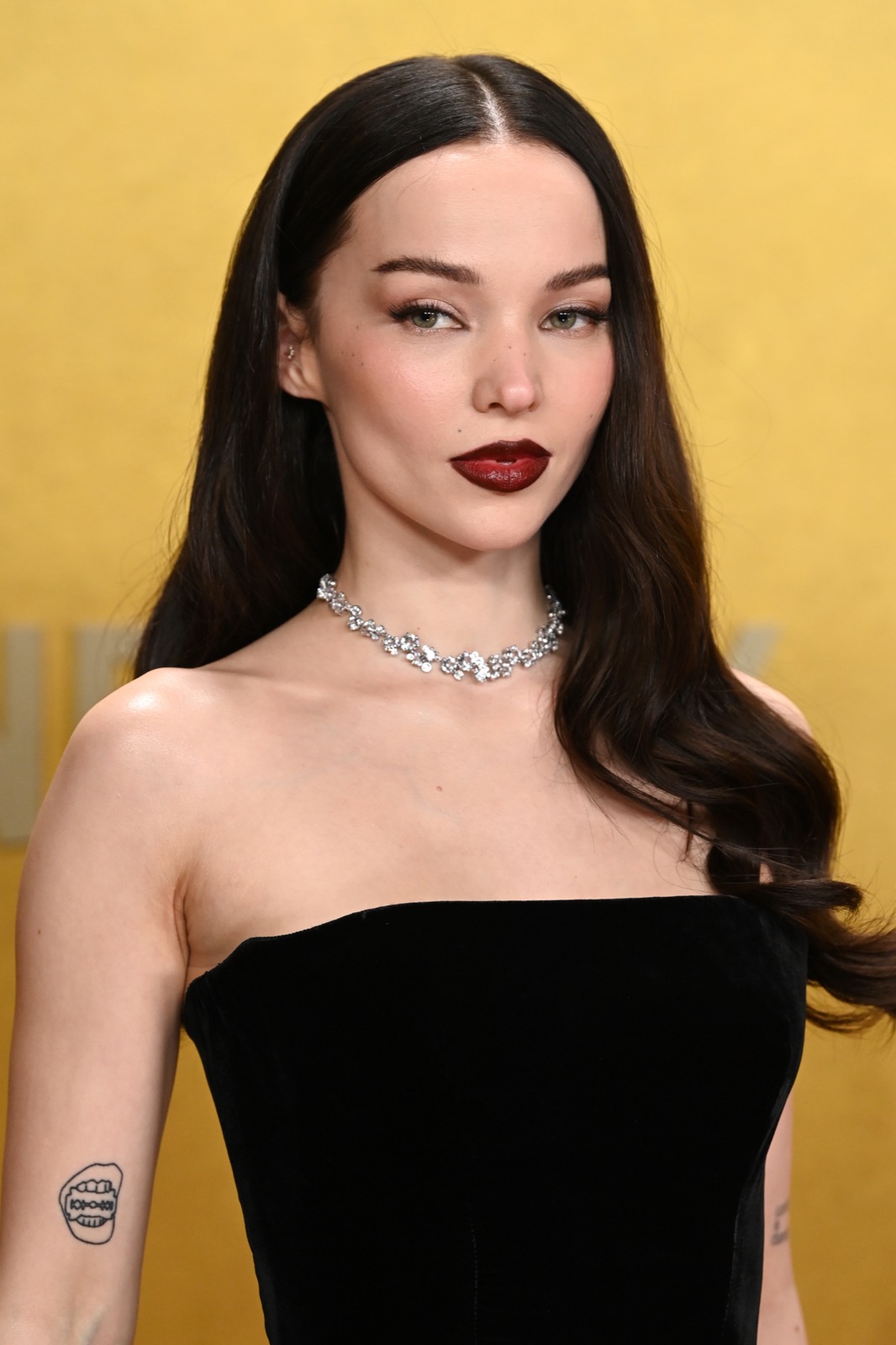 Entre princesse gothique et diva hollywoodienne, Dove Cameron hypnotise le tapis rouge… et les photographes oublient presque pourquoi ils étaient venus.