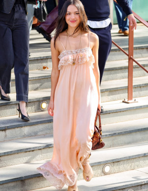 - 19/03/2026 - Devon Lee Carlson au défilé Saint Laurent, sa nuisette transforme Paris en vestiaire