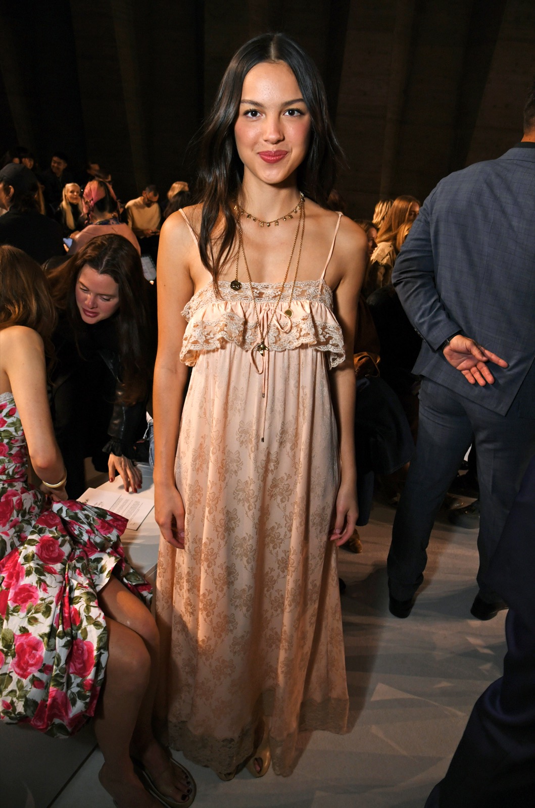 Au défilé Chloé automne-hiver, Olivia Rodrigo flotte en robe vaporeuse… et même les marches semblent tomber amoureuses.