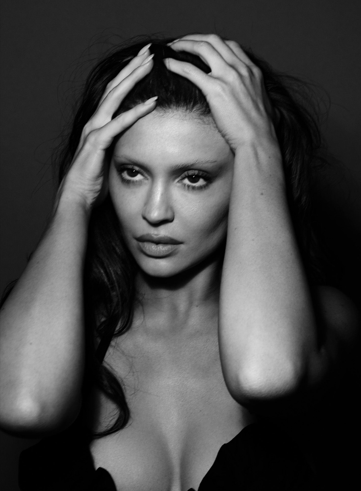Entre lingerie noire, cambrure millimétrée et regard « je viens de lancer un nouveau Kylie Cosmetics sans prévenir », même la lampe semblait rougir.