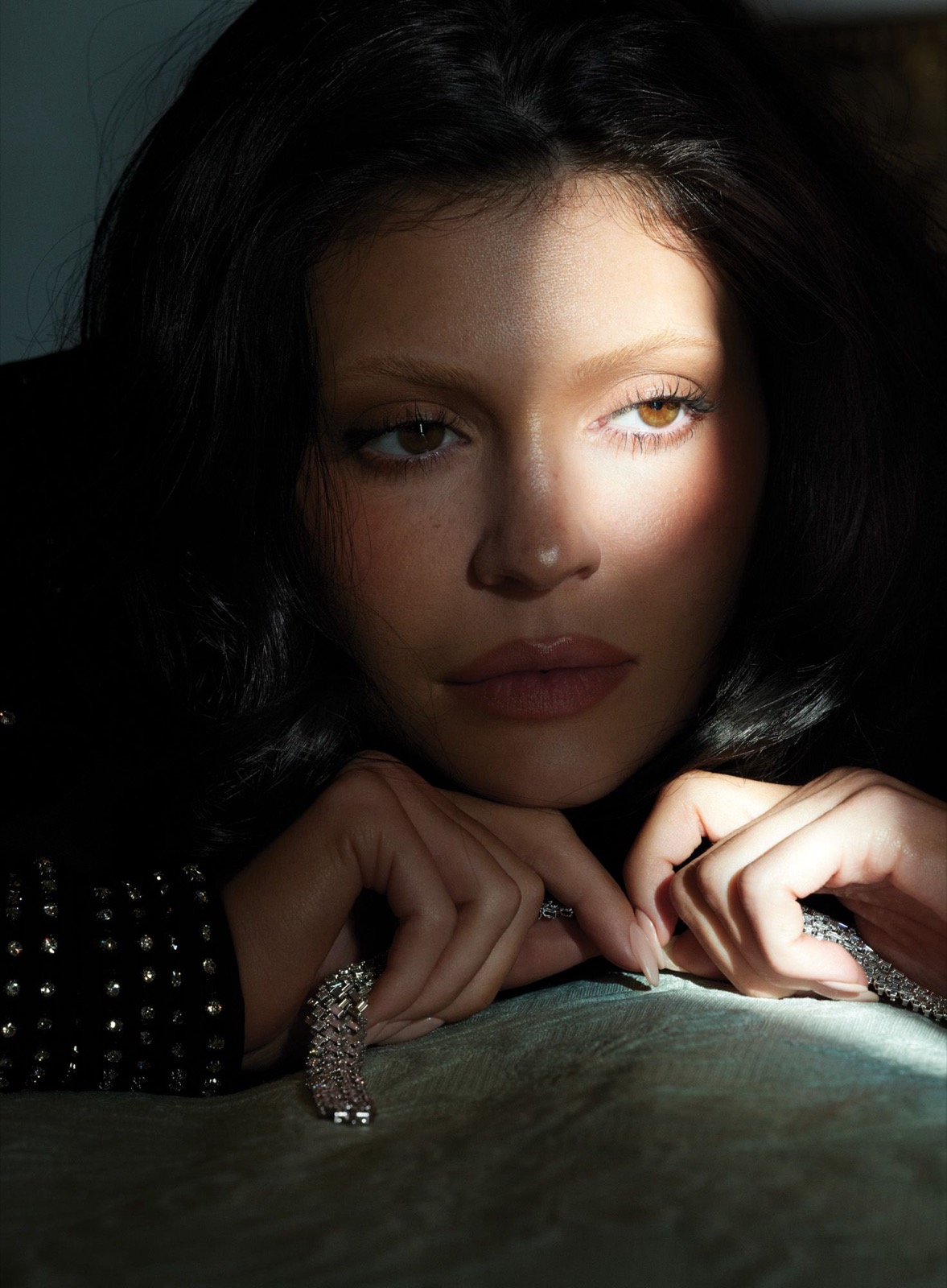 Shooting Vanity Fair version chambre aristocratique, Kylie joue la tentatrice en lingerie noire et fait clairement regretter aux meubles d’avoir accepté ce job.