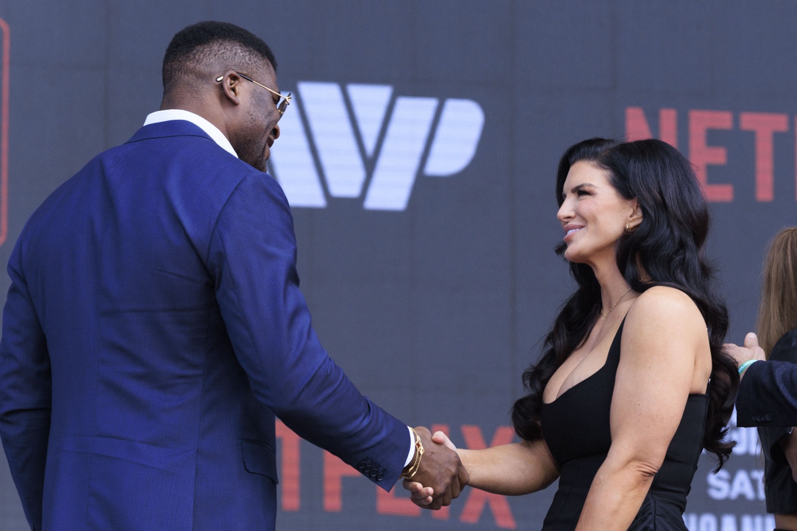 À Los Angeles, Gina Carano débarque à la conférence de presse Most Valuable en mini-robe noire, sourire net et allure très calme, donc évidemment très dangereuse pour l’ambiance.