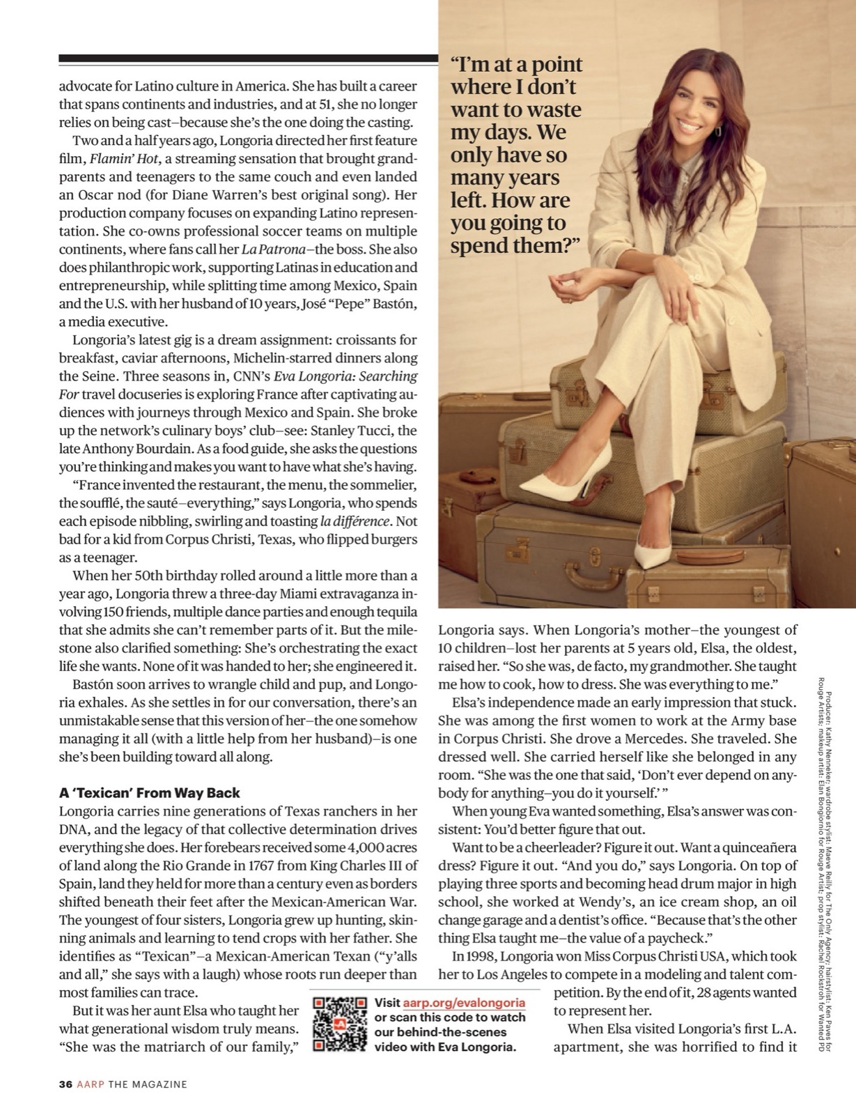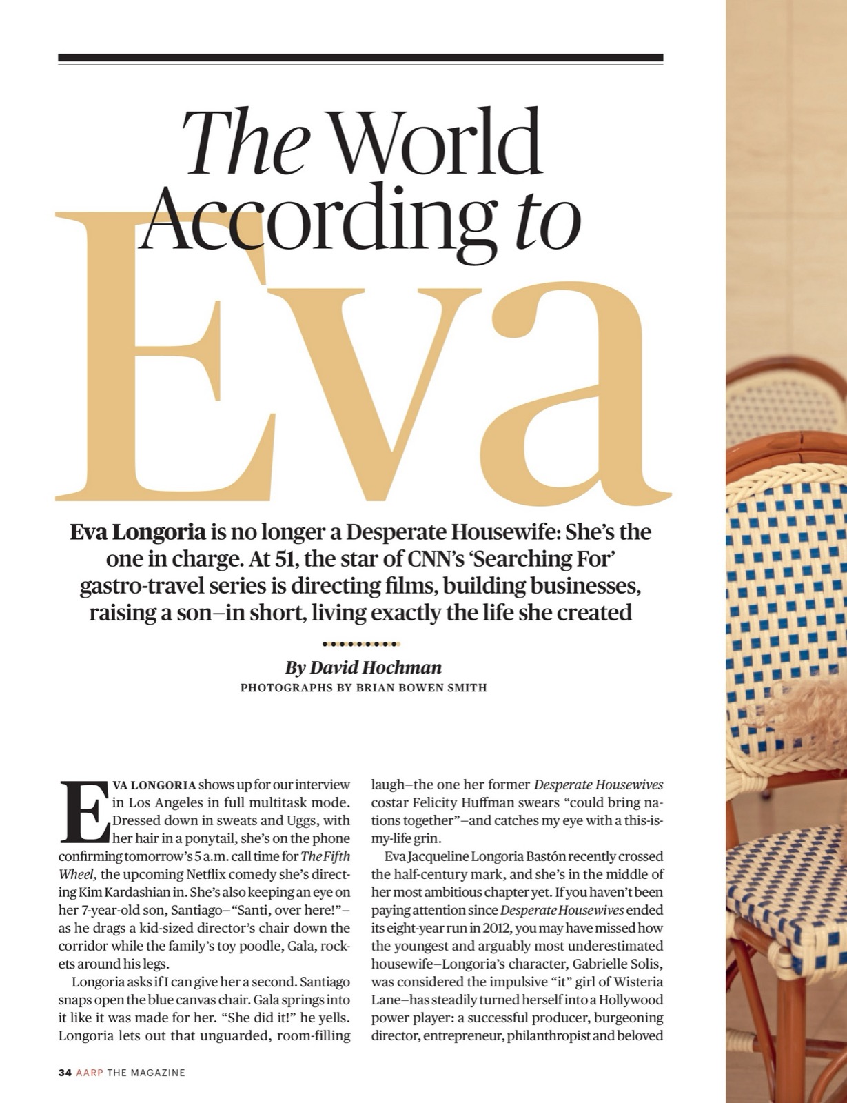 Pour la séance AARP The Magazine, Eva Longoria s’installe en chemise claire puis en trench bleu poudré, café à la main, avec l’air d’avoir déjà réglé trois problèmes avant même la première gorgée.