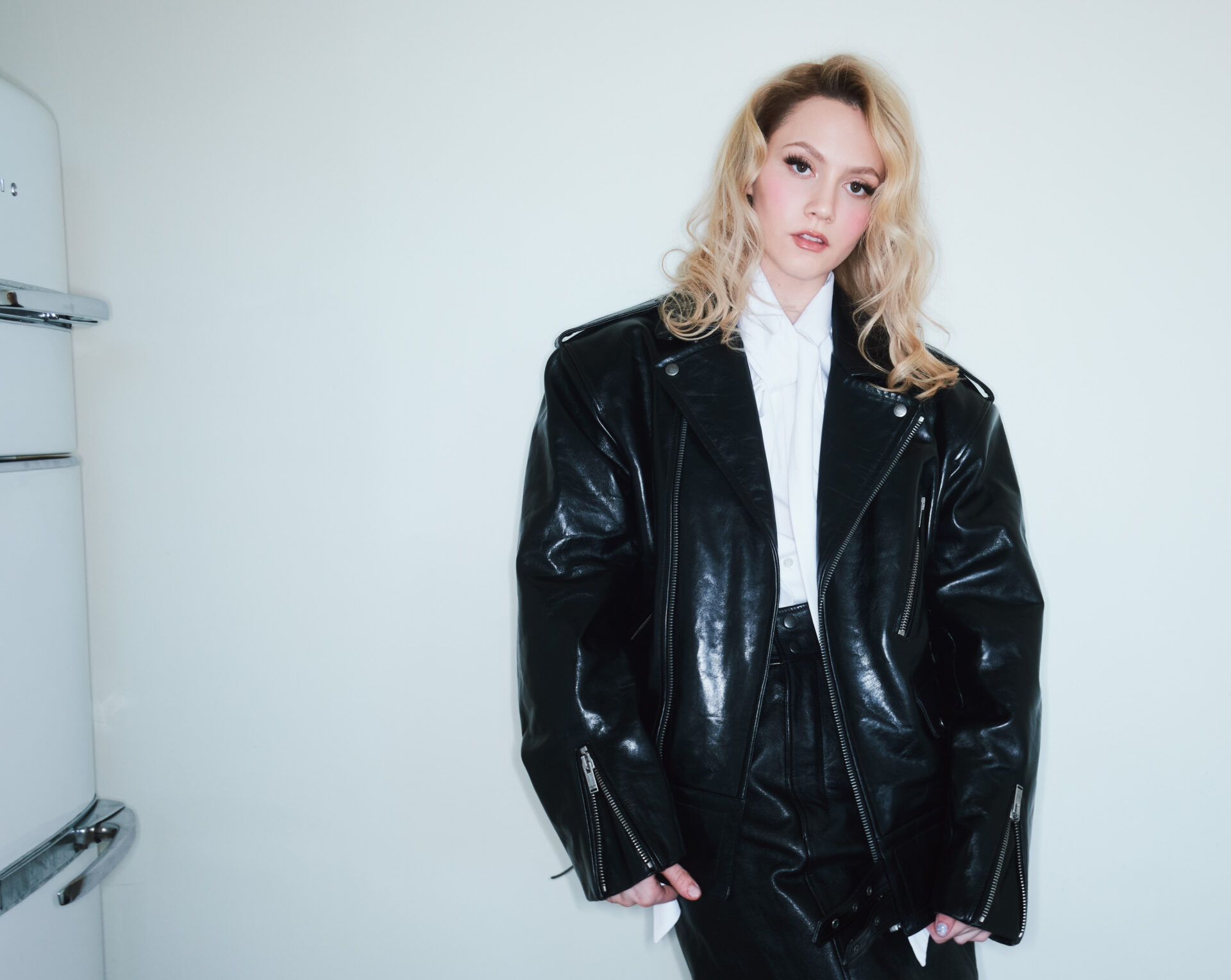Pour la séance photo de Heroine Magazine, Iris Apatow arrive entre vieux frigo, mur blanc et regard si sage qu’on cache instinctivement les allumettes.