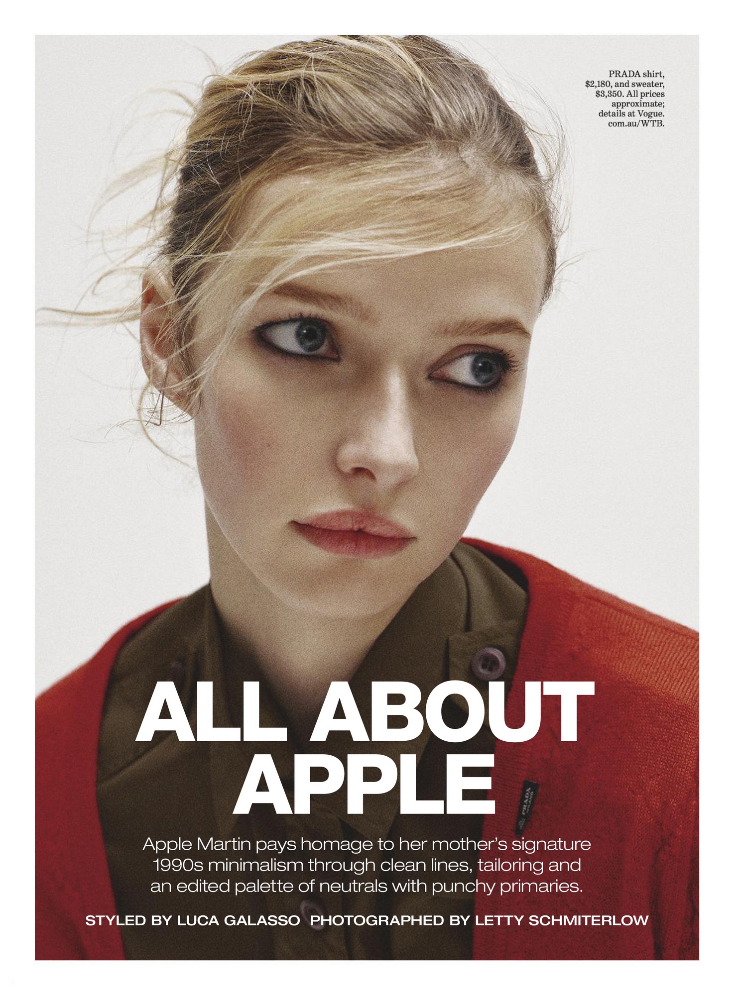 Pour Vogue, Apple Martin n’arrive pas en héritière sage: elle entre dans le cadre comme une jeune femme qui teste déjà la pièce, l’équilibre et le regard des autres.