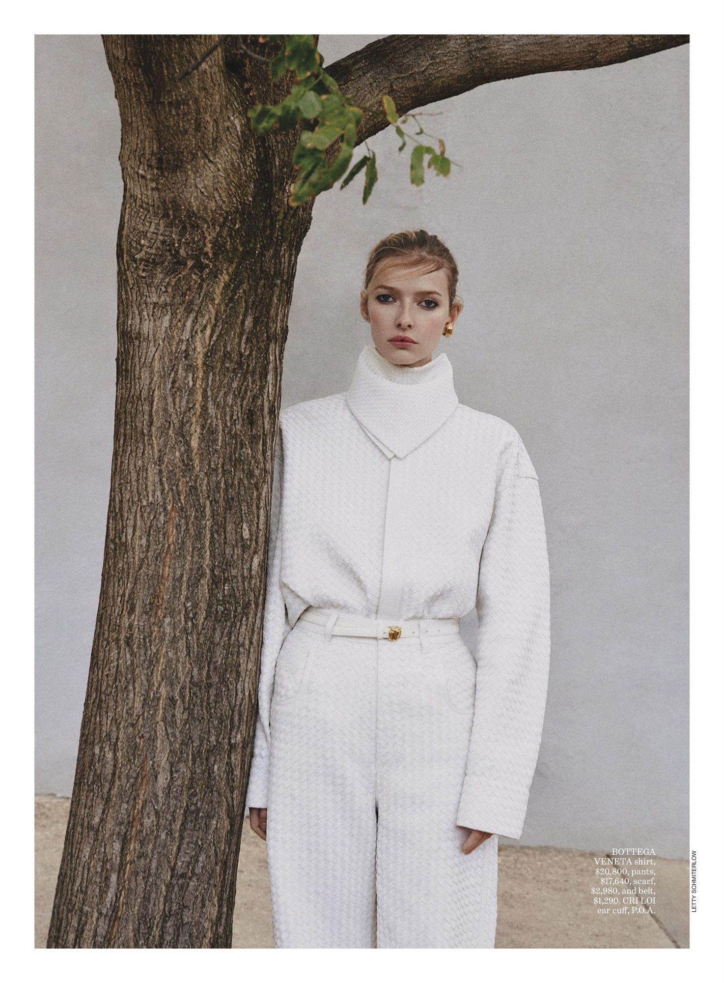 Pour Vogue, elle surgit en silhouette nerveuse et regard froid, comme si l’élégance avait décidé de devenir un peu plus dangereuse.
