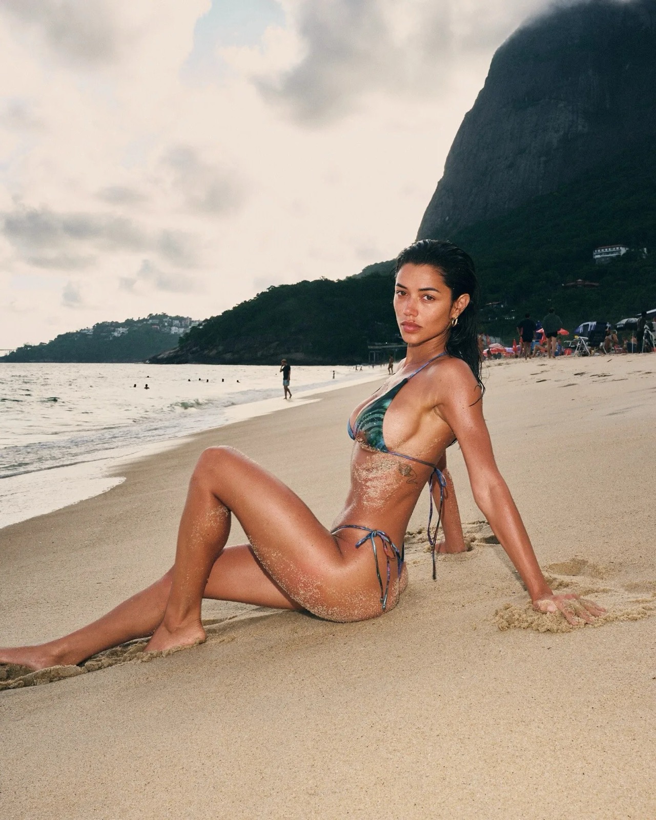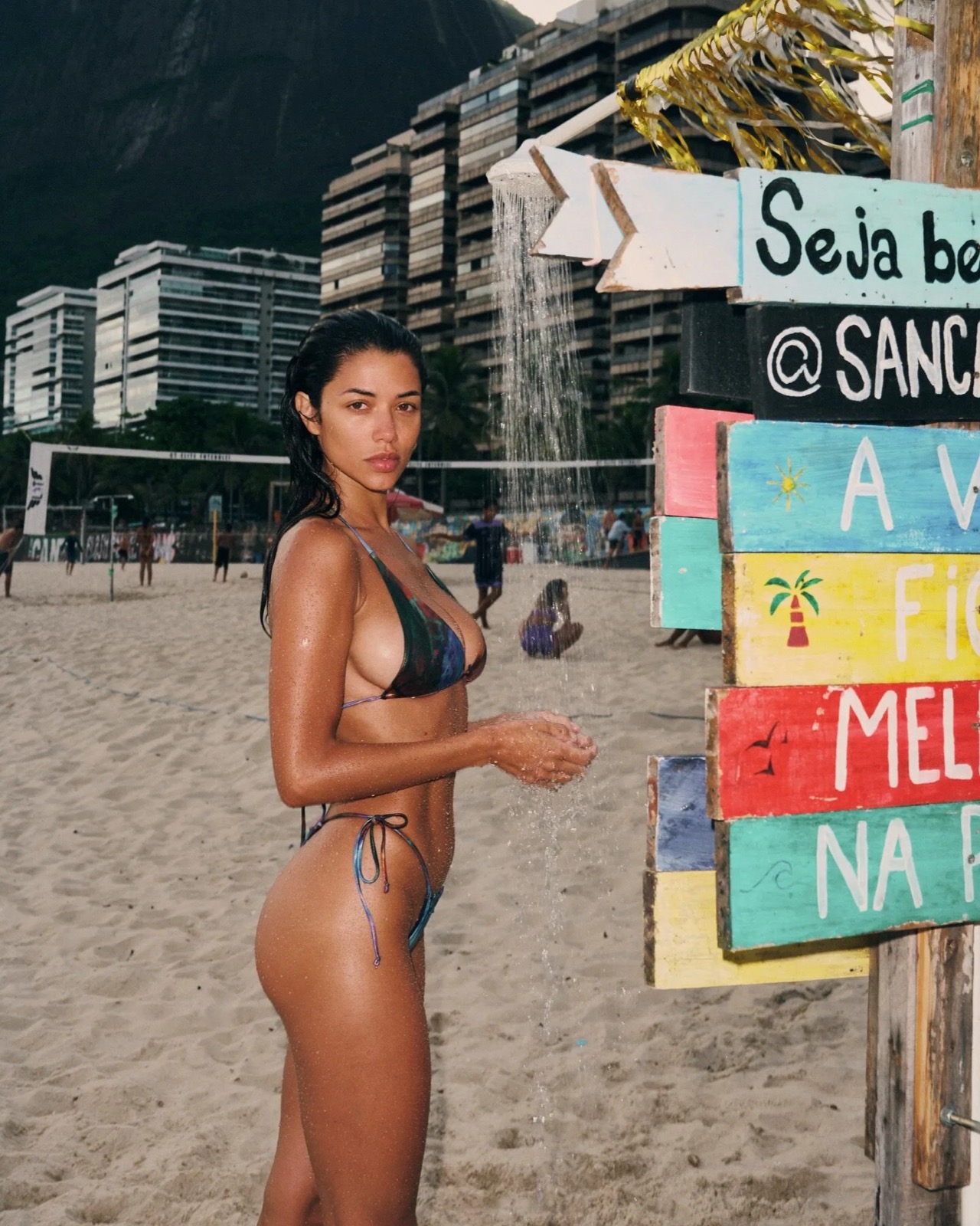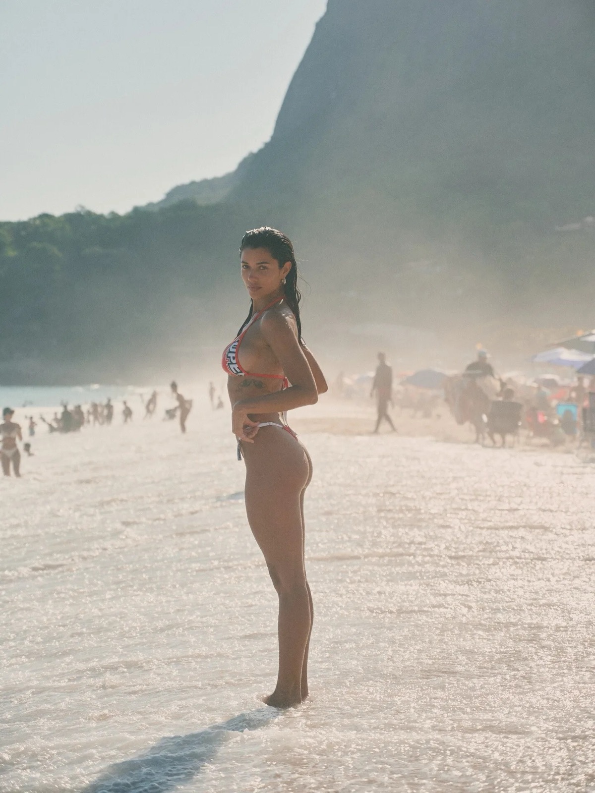 Entre sable chaud, douche de plage et bikini incendiaire, Ray Bitancourt transforme cette séance photo en petit moment de chaos très bien maîtrisé.