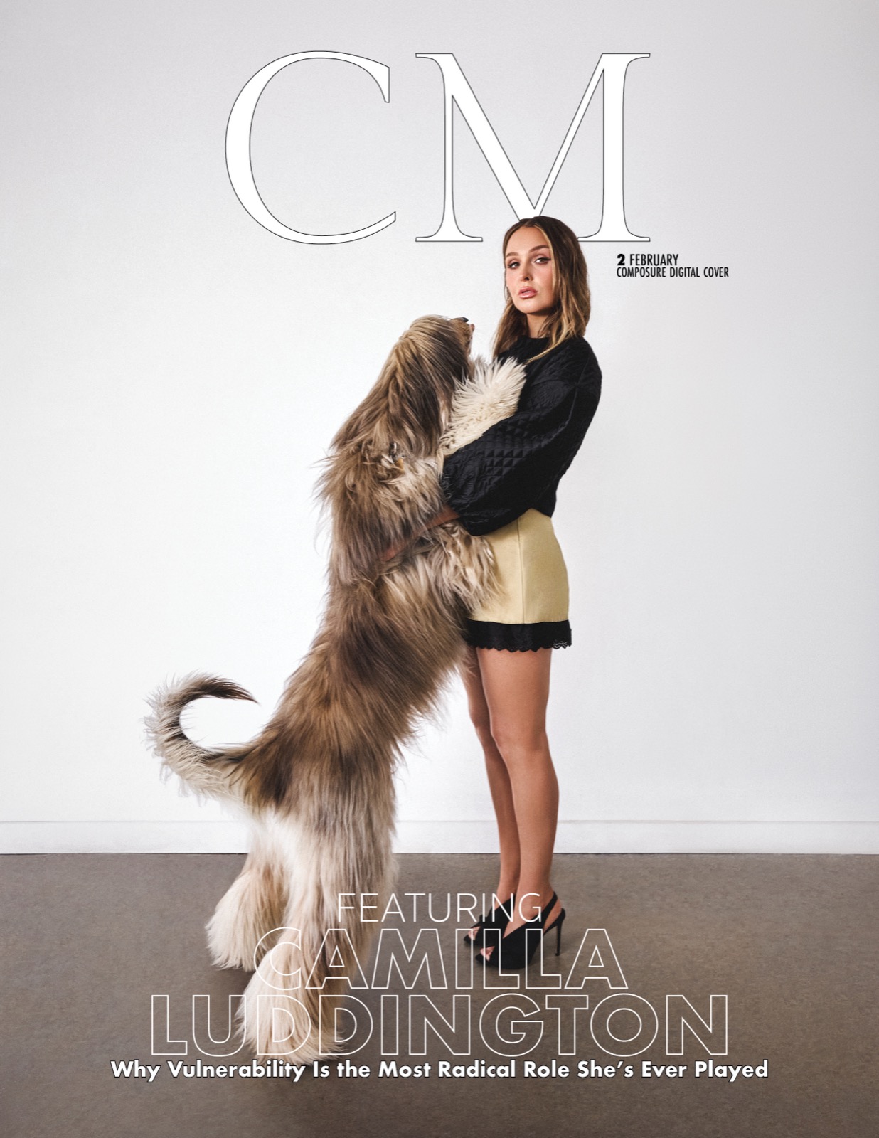 Pour la séance magazine de COMPOSURE, Camilla Luddington entre dans le studio comme dans un rêve très bien coiffé, entre fond blanc sage et éclat fuchsia.