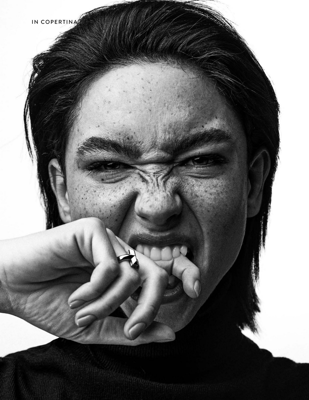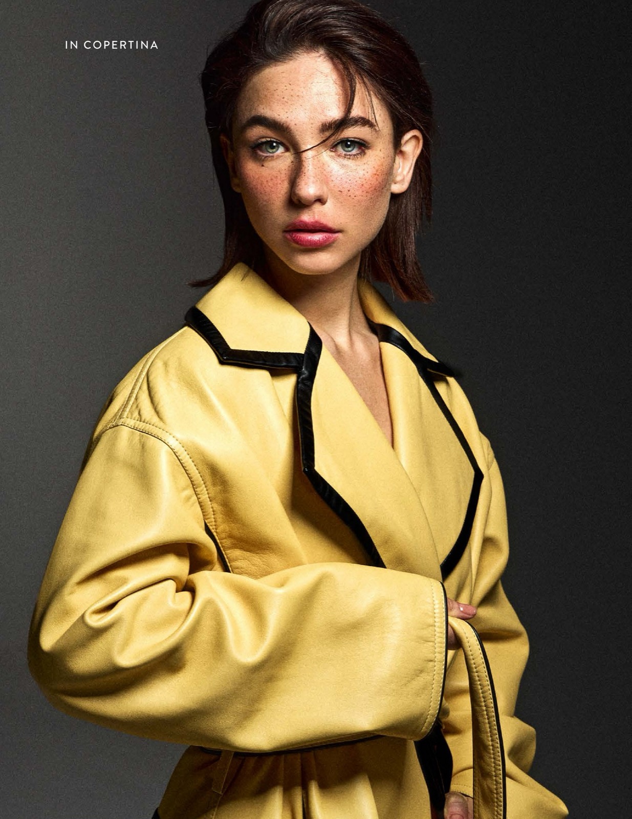 Chez F Magazine, elle glisse du portrait sage au trouble chic avec un aplomb délicieux.